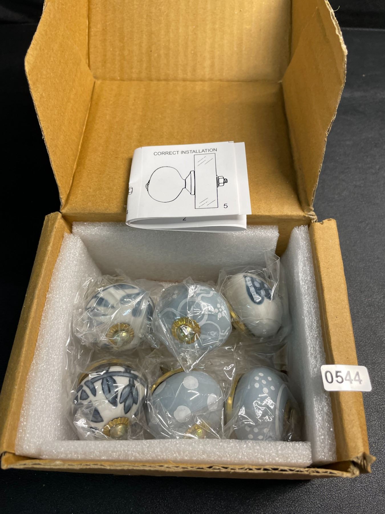 Box of 6 Grey & White Cupboard Knobs - Ceramic Drawer Pulls for Cabinets (2.5  x 1.7 ) New