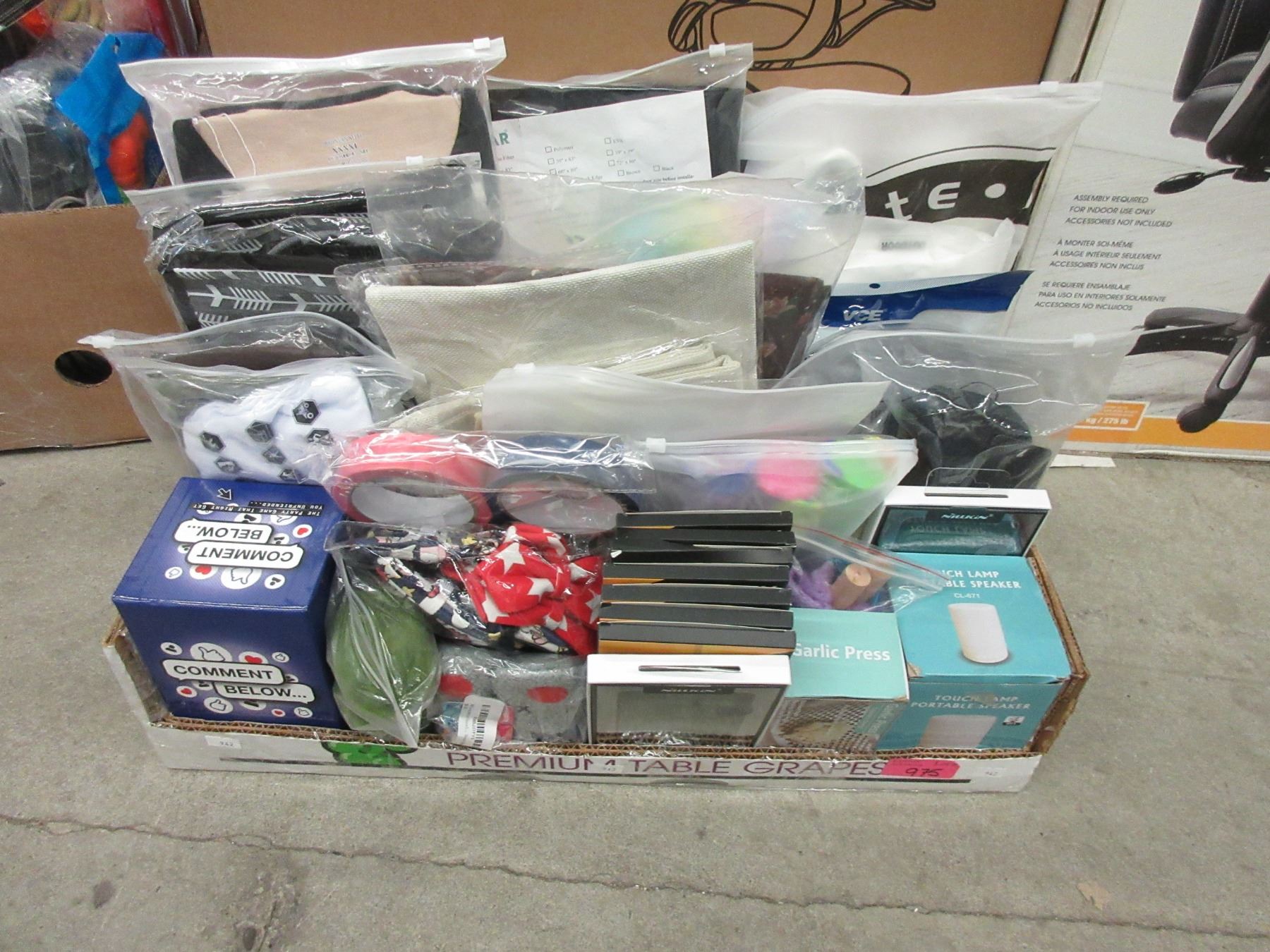 Clothing ,games, touch lamp speaker, craft tape and more.