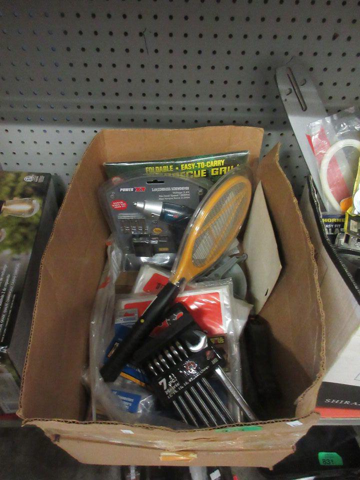 Bicycle bugle horn, poly sheets, cordless screw driver, 150 pc. butt connector set, and more.