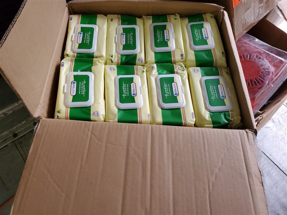 Box of Fustin Antibacteril wipes - Most Items have not been tested - 17% Buyer Fee. Payment Processed through Live Auction World ( Visa or Master Card ) pick up Saturday, or Tuesday