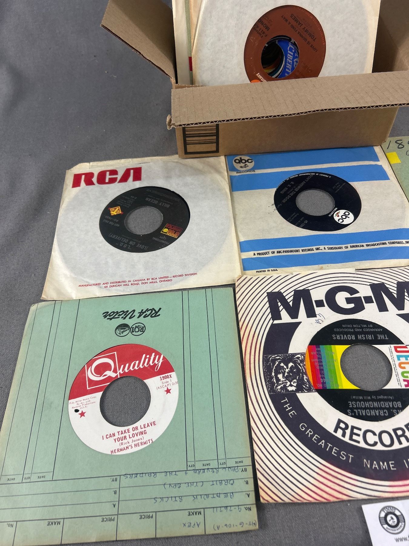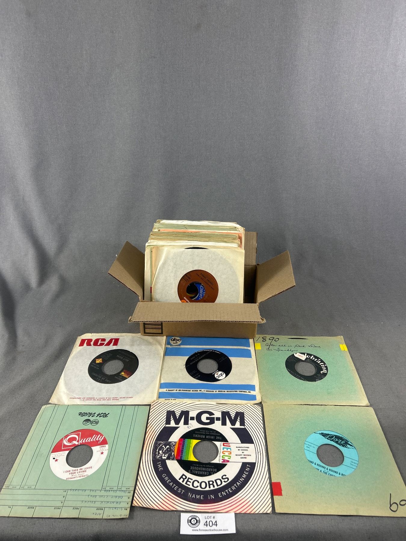 Box of Various 45 Records. No Scratches on Most. But Light on a Couple