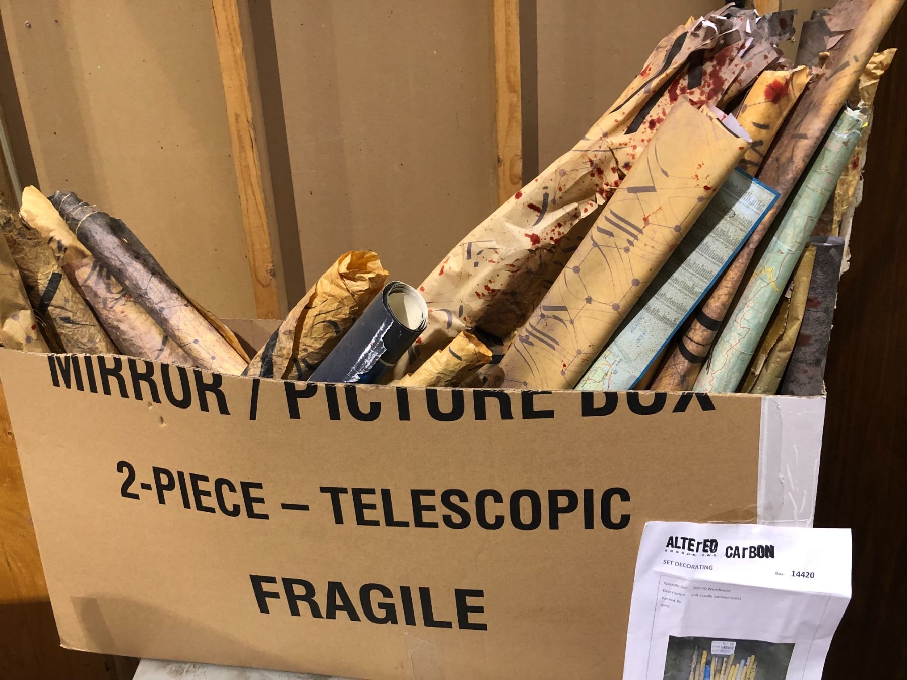 Box of approx. 28 scrolls - set decoration props from sci-fi show