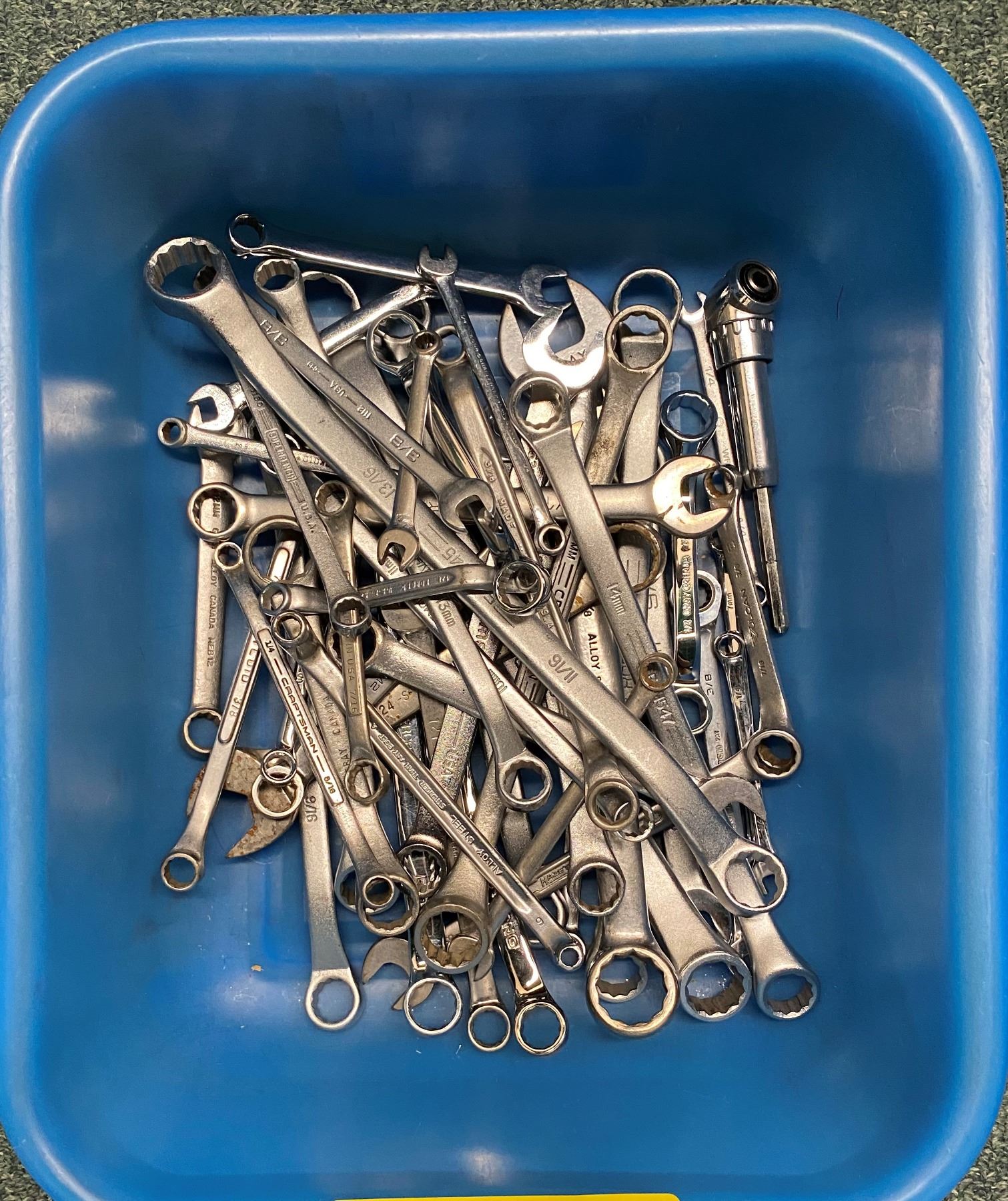 Box of approx. 50 assorted brands combination wrenches