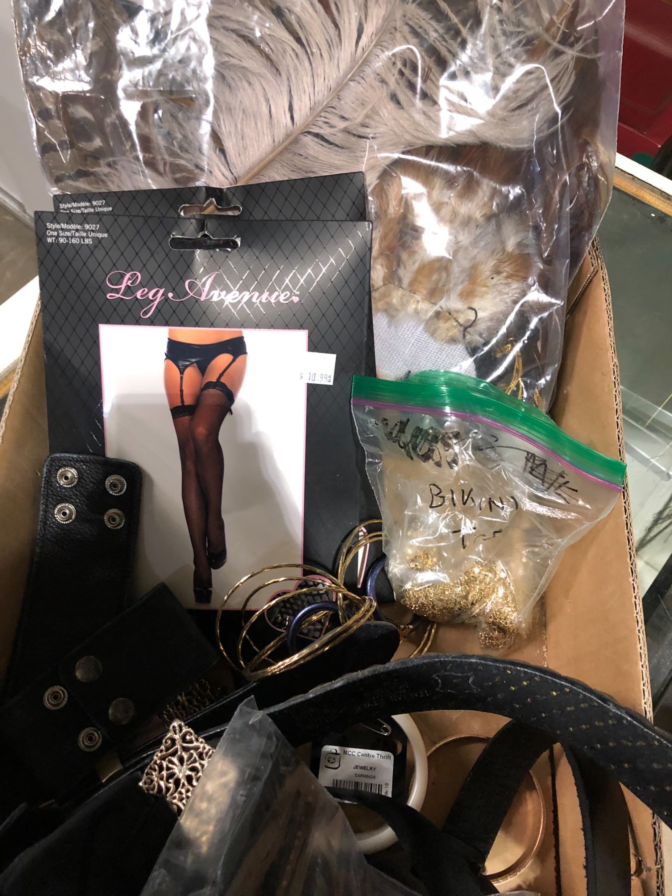 Box of assorted belts/ ladies leggings/ features etc. from the sci-fi show