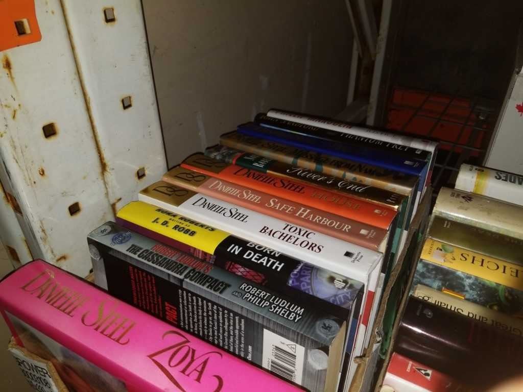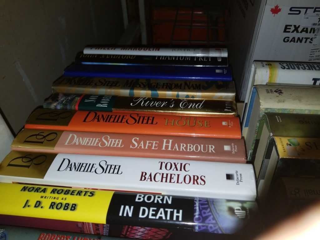 Box of hardcovers and novels including danielle steel