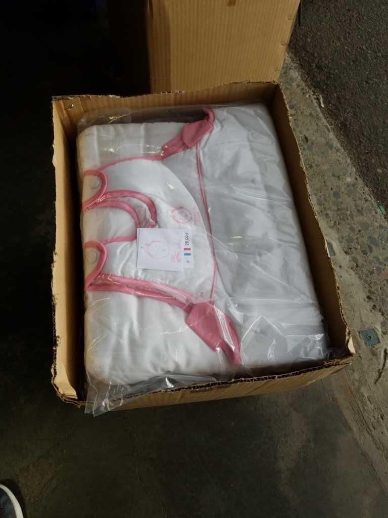 Box of new pink baby bumbos