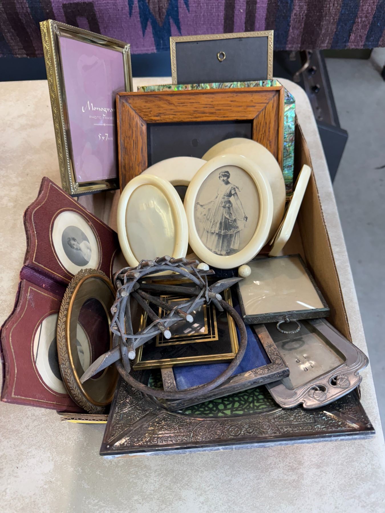 Box of small misc. vintage picture frames