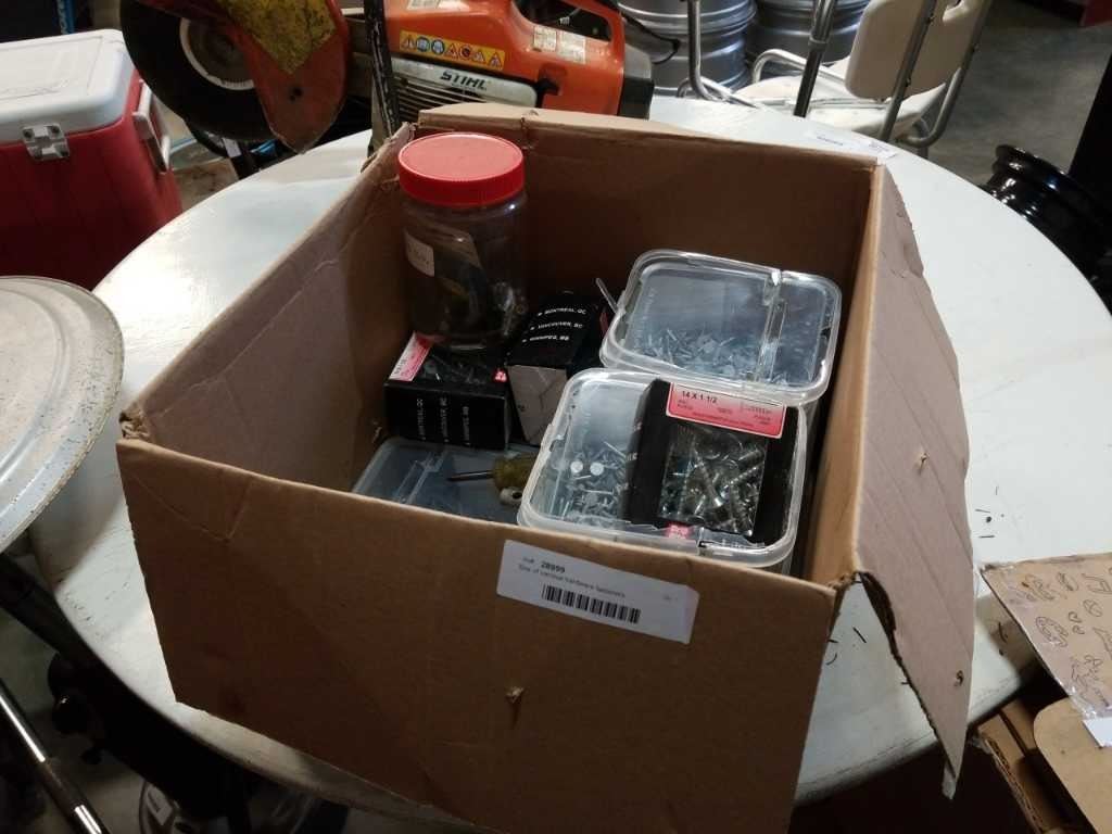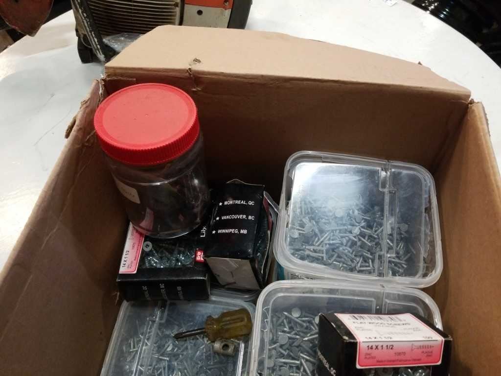 Box of various hardware fasteners