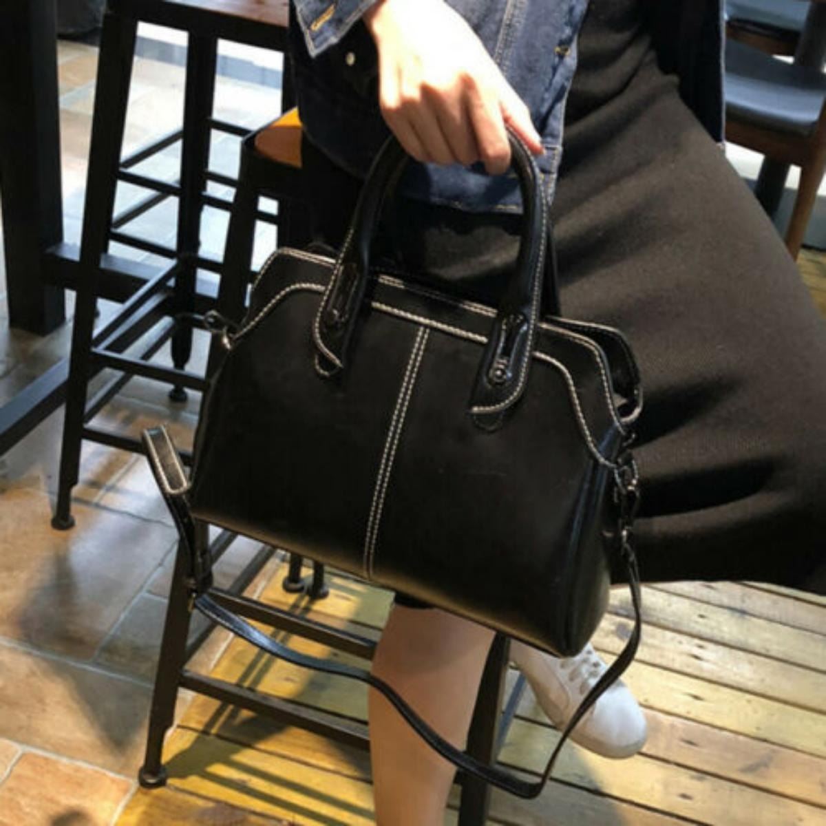 Brand New Genuine Leather Ladies Handbag; Top quality....size : 31 x 9 x 23 CM: Black Color