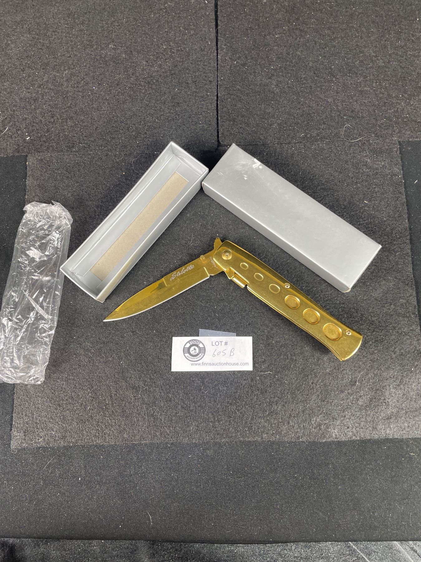Brand New Gold Colored Stiletto Folding Knife in Box
