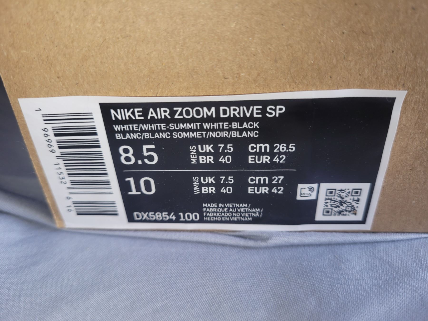 Nike Air Zoom Drive SP White Summit White Black Men's size 8.5 and women's size 10. Pickup at 9 am