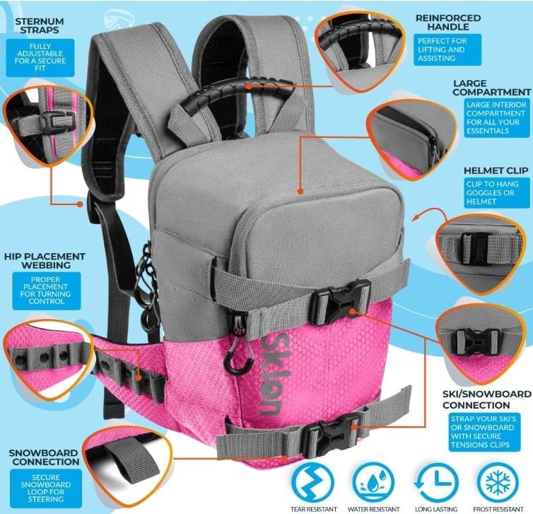 Brand New Sklon Ski and Snowboard Harness Trainer Backpack-Pink