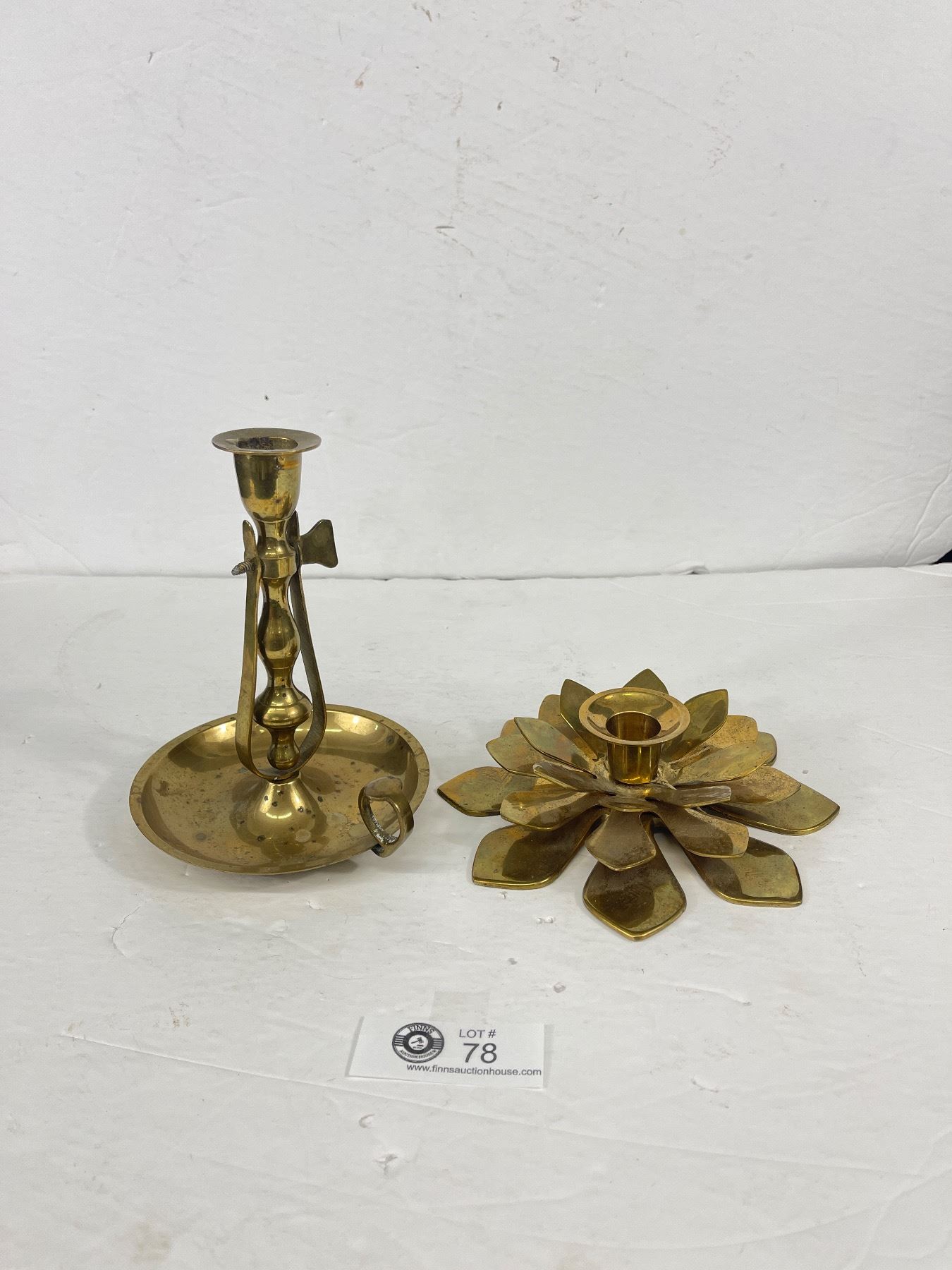 Brass Chamber Candlestick Holder & Heavy Vintage Brass Lotus Taper Candle Holder