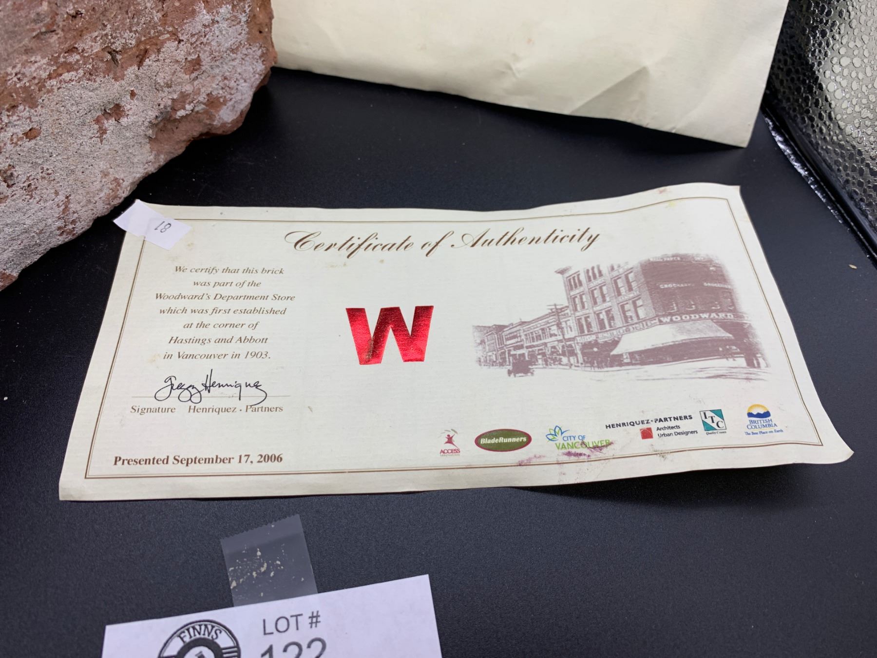 Brick from The Woodwards Building In Vancouver with COA.
