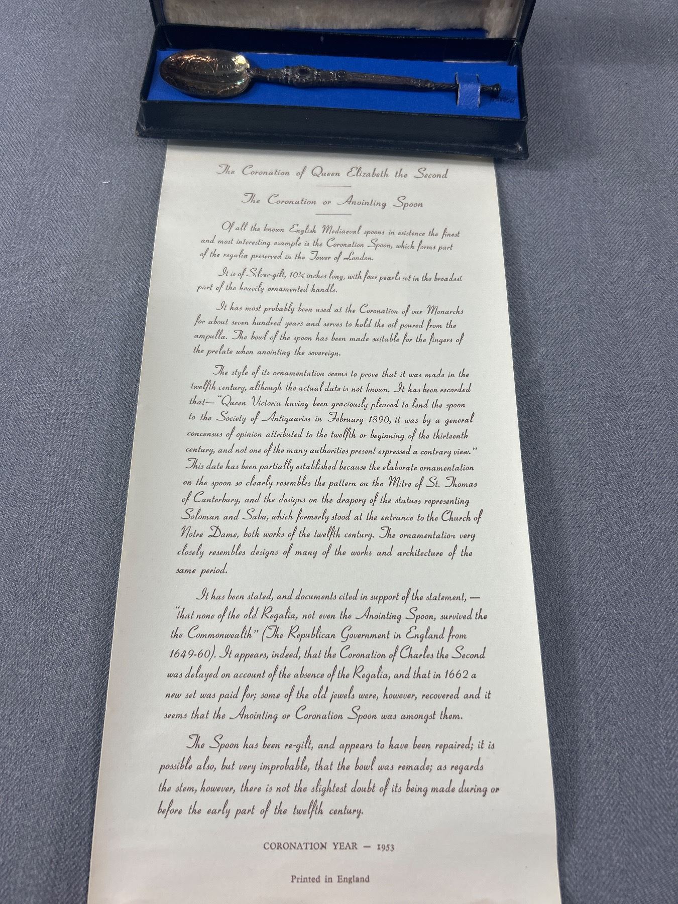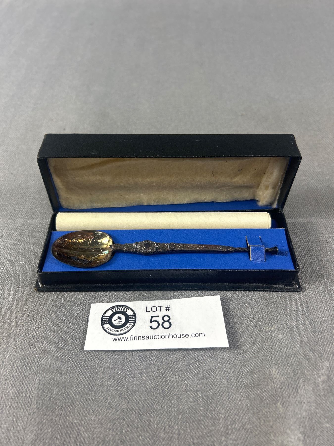 British Annointing Spoon in Box with Scroll 1930s