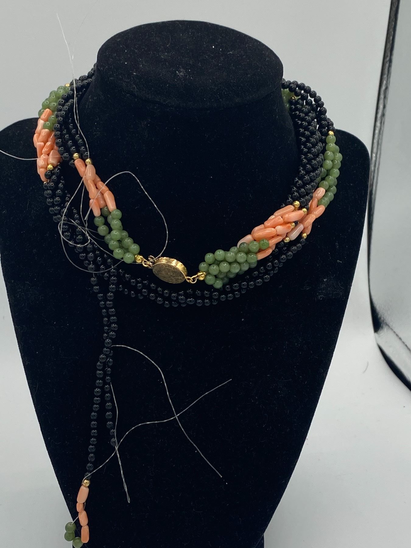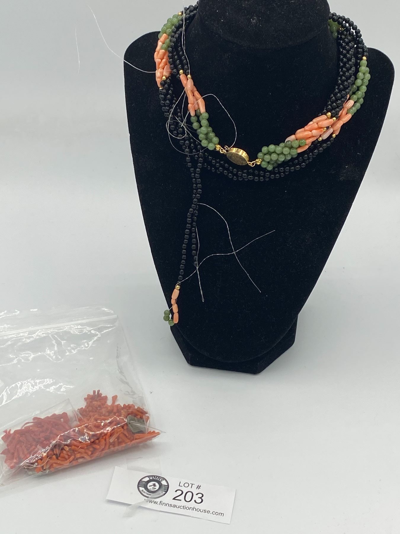 Broken Coral Jade and Onyx Necklaces for Re-use