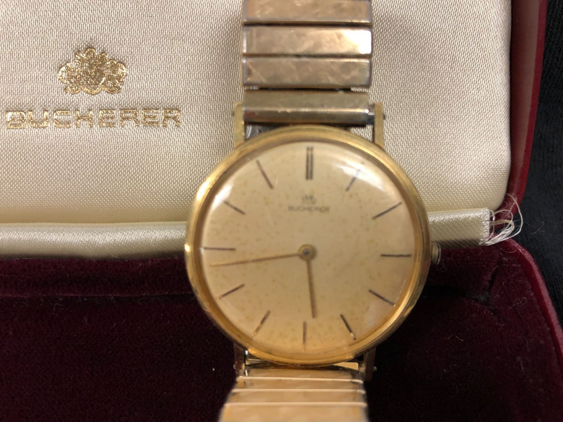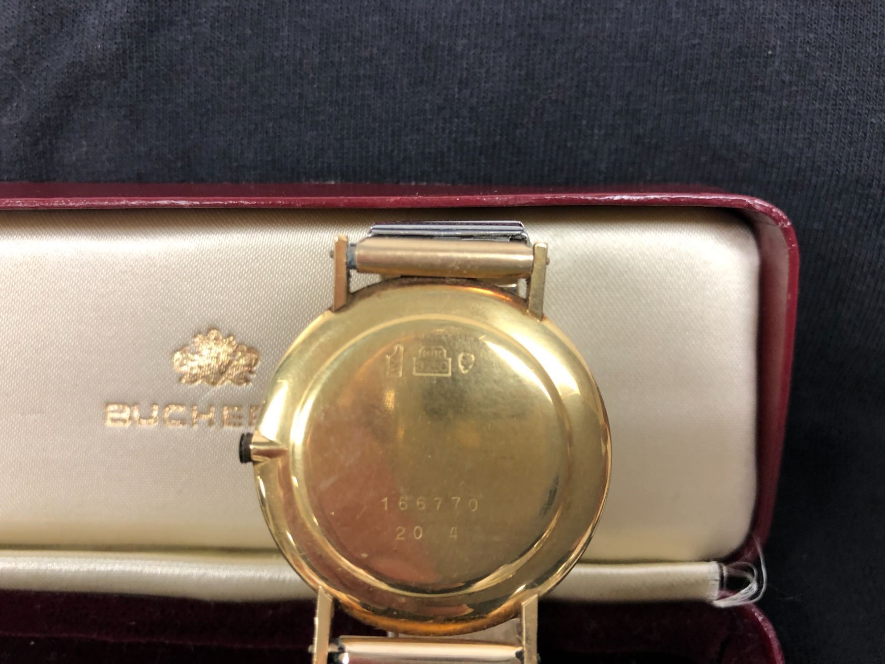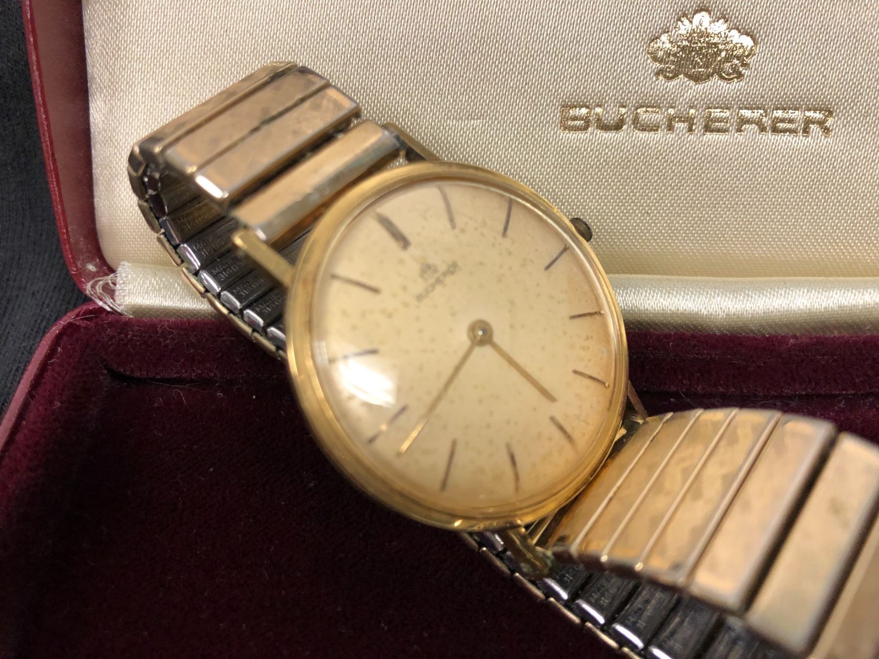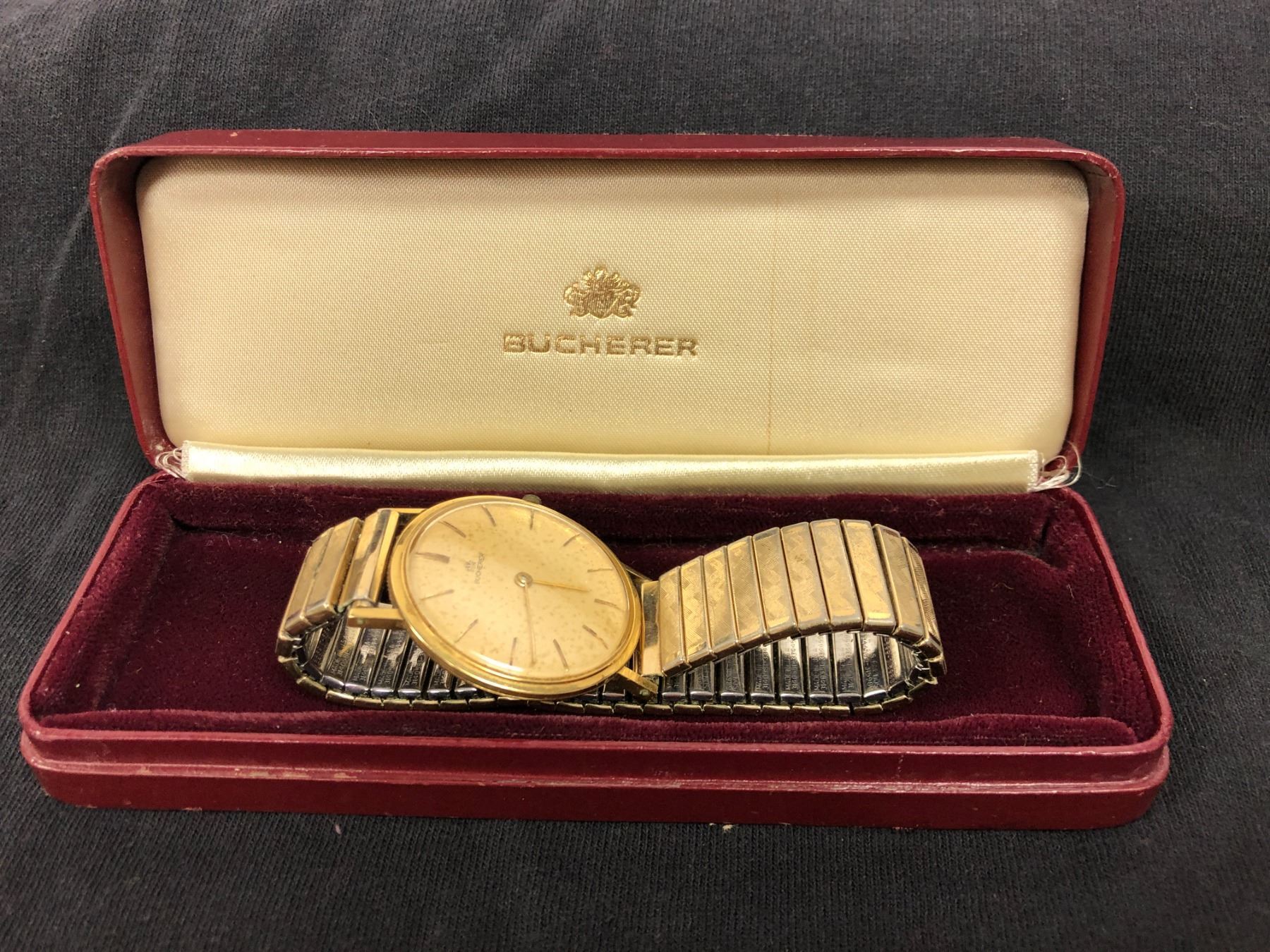Bucherer 18k gold (stamped) vintage men's watch w/ original box - Swiss Made - serial #166770