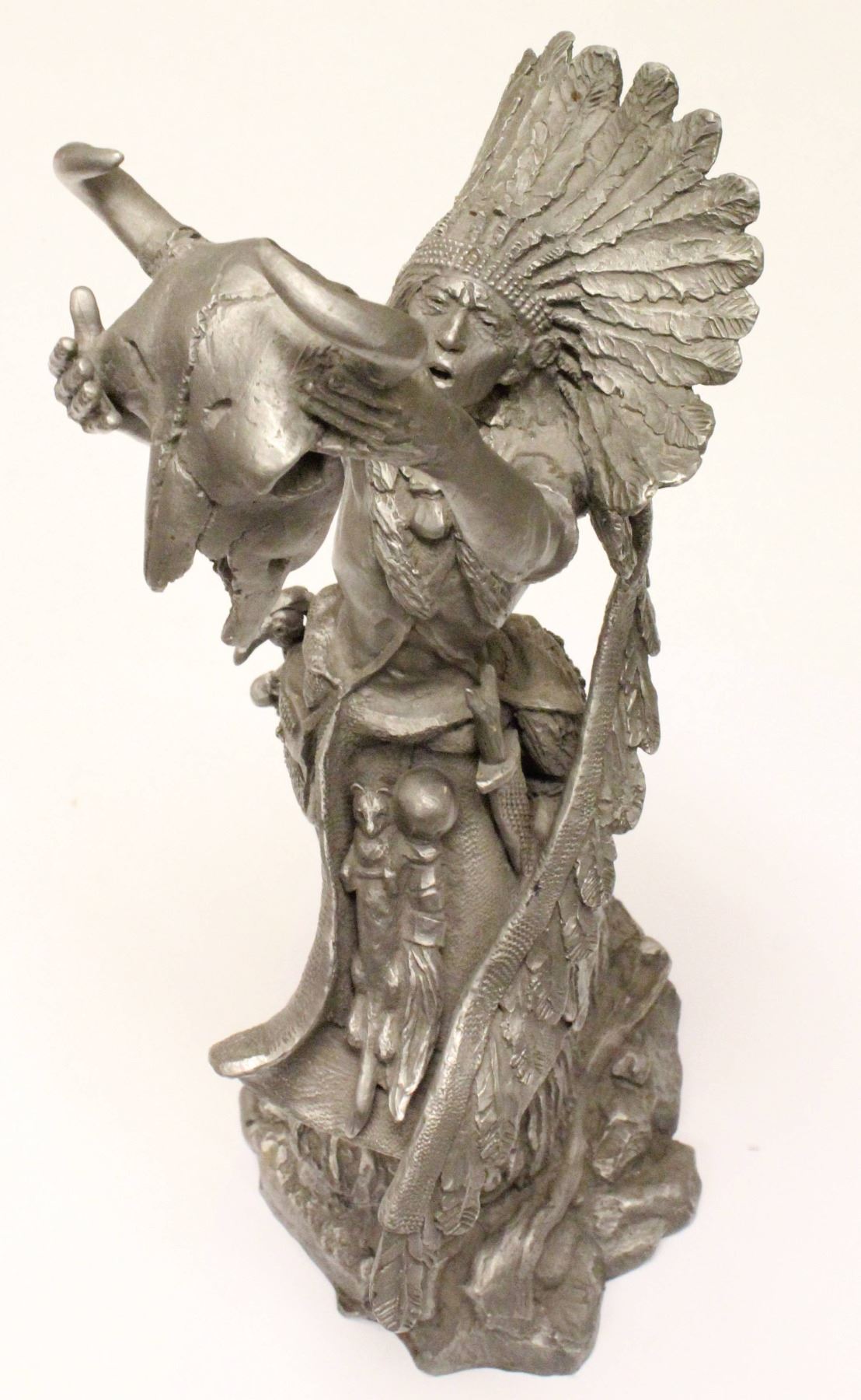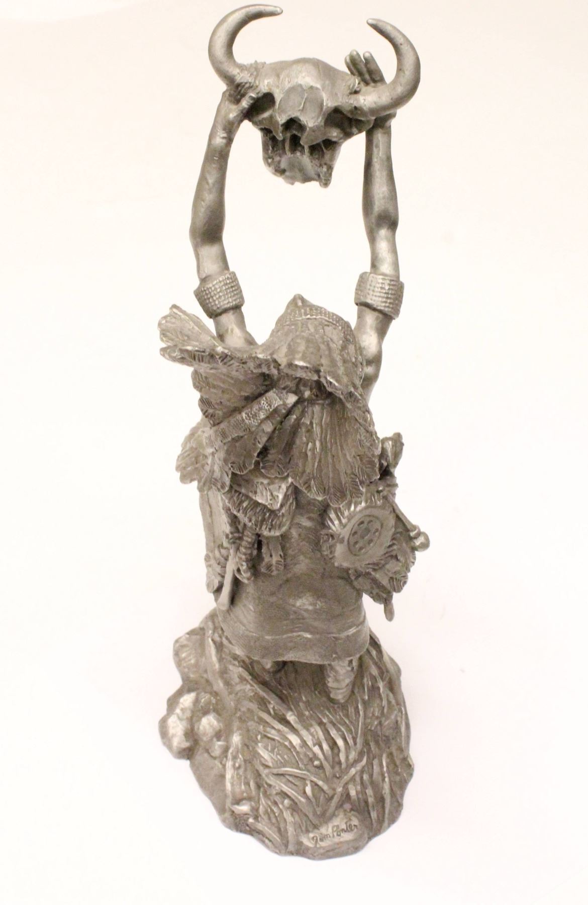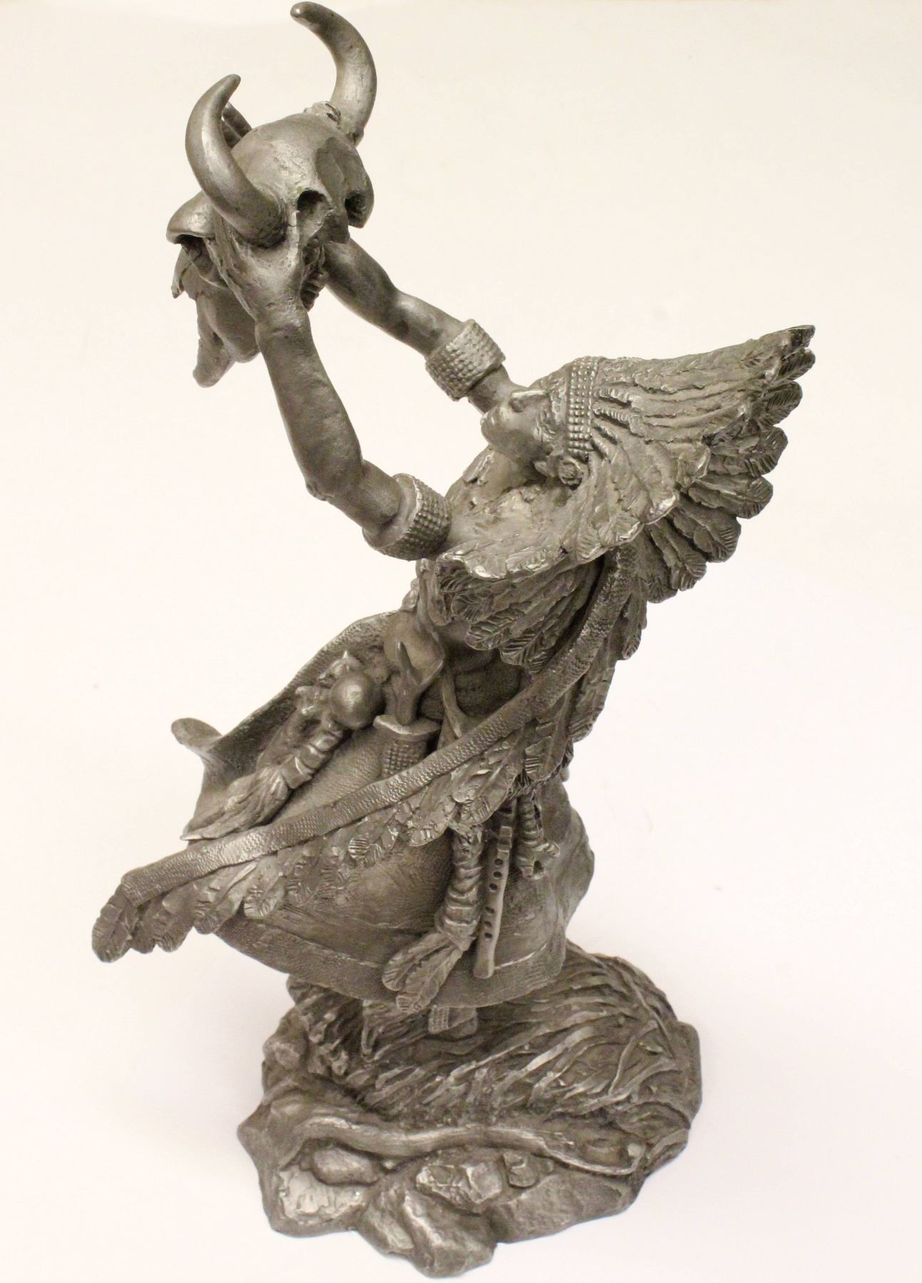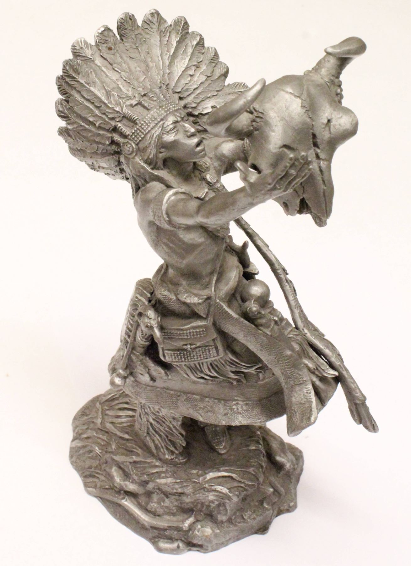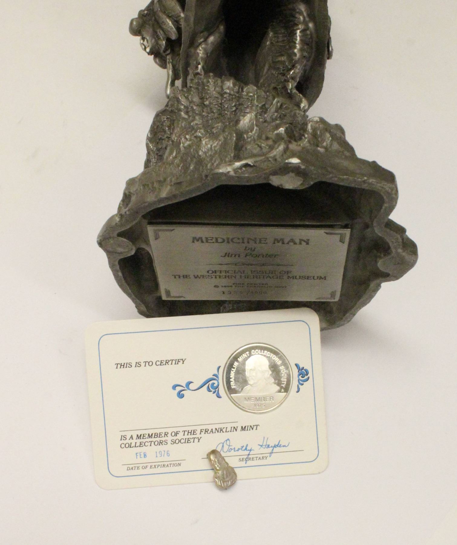 Native Art Jim Ponter Buffalo Skull Medicine Man Statue By Franklin Mint #1339/4500 Western comes with Franklin Mint Sterling Silver Membership card