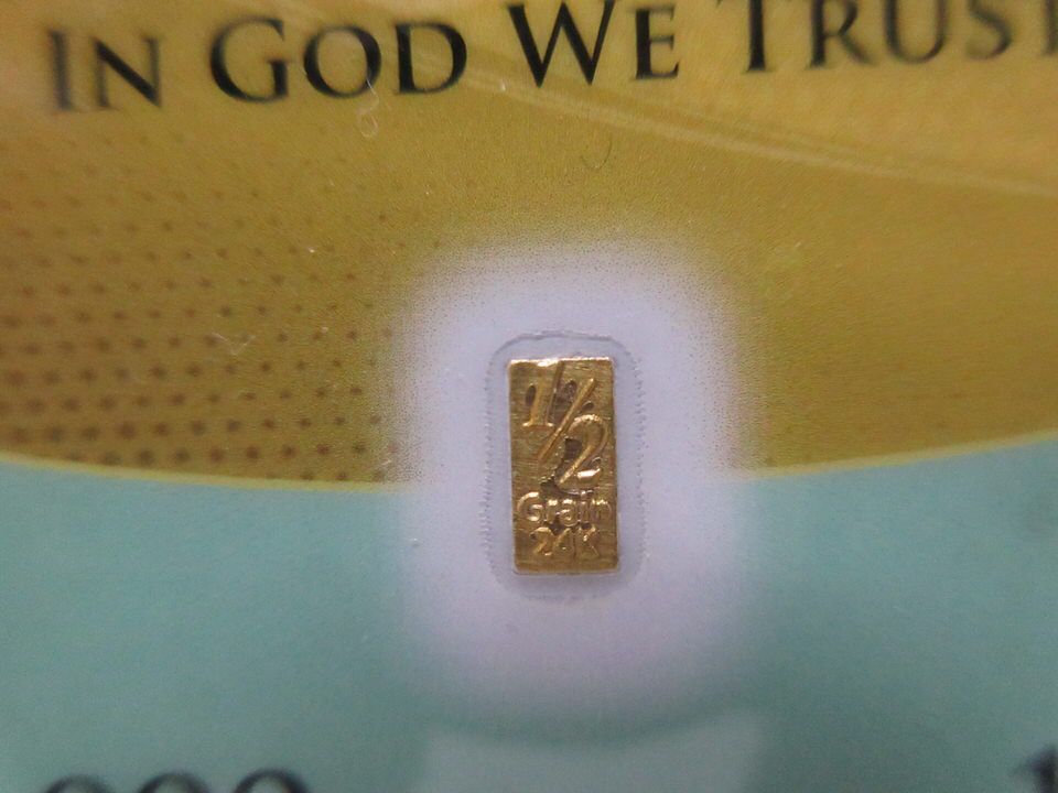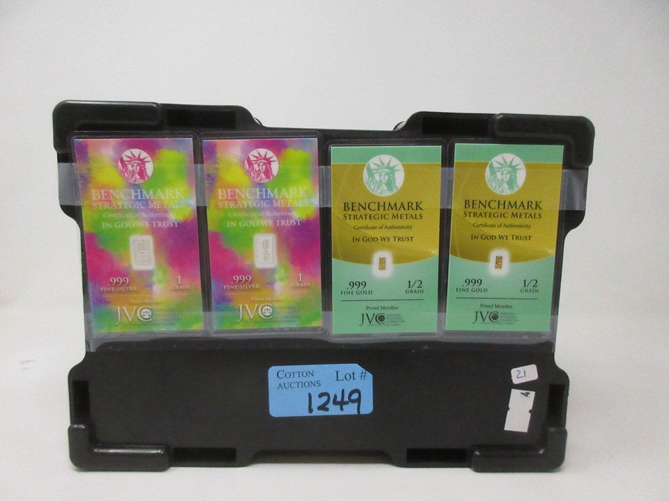 Benchmark gold & silver bars are mint sealed on certified cards. Total gold weight is 1 grain. Total silver weight is 2 grains. Black Bullion box measures 8" x 10" x 5" deep.