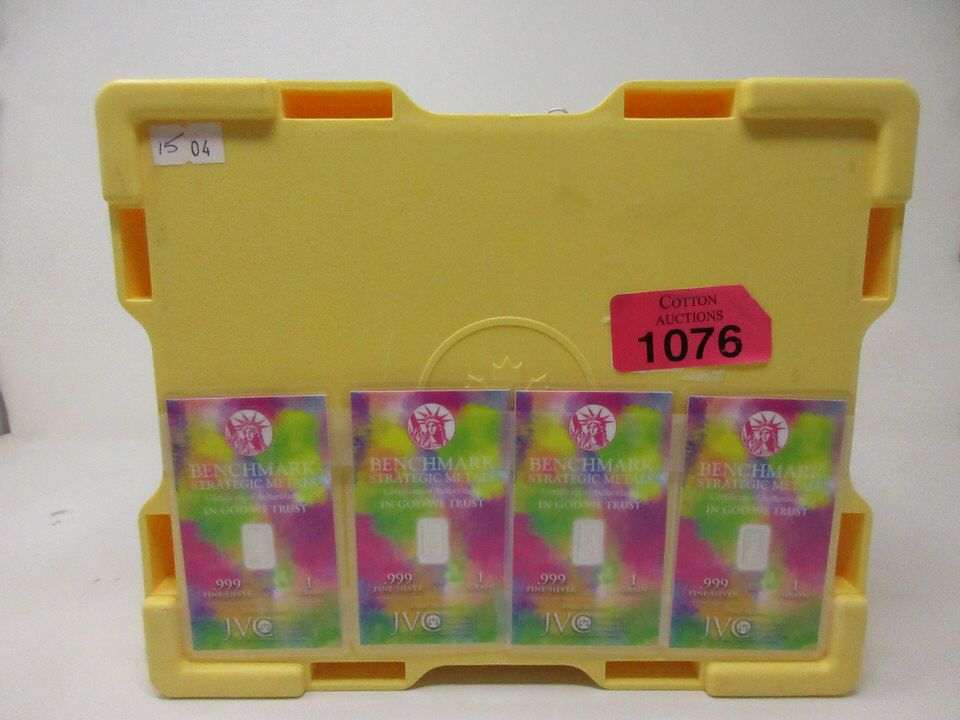 Benchmark silver bars are mint sealed on certified cards. Total silver weight is 4 grains. Bullion box measures 8.5" x 10" x 4" deep.