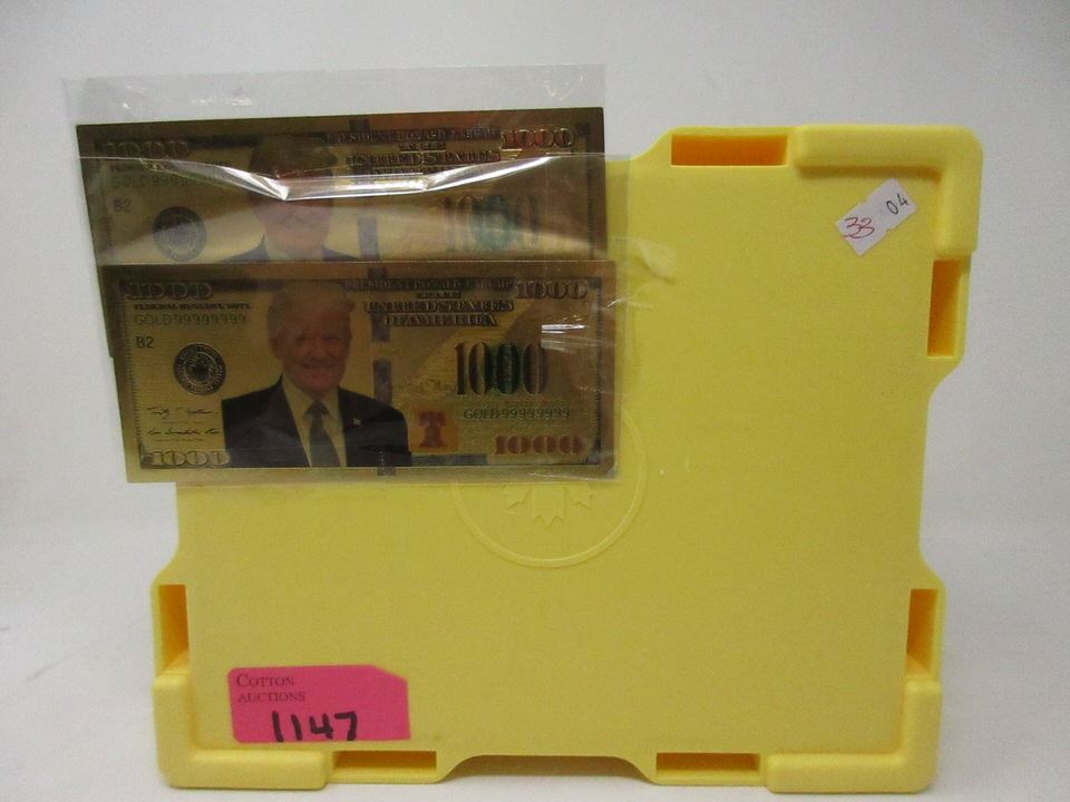 2 Gold foil $1000 novelty notes. The Canadian Mint box measures 4" x 8" x 10".