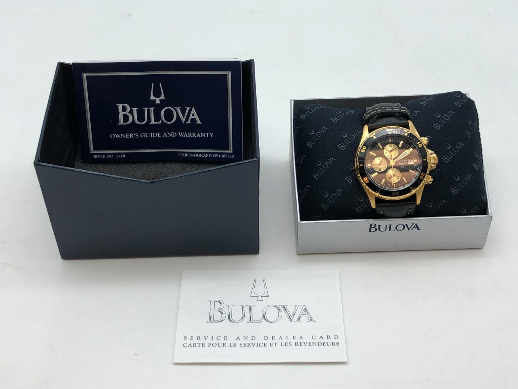 "Bulova" - 2 Tone Chronograph w/leather strap - Model no. OS10/OS20 - Brand New in Box