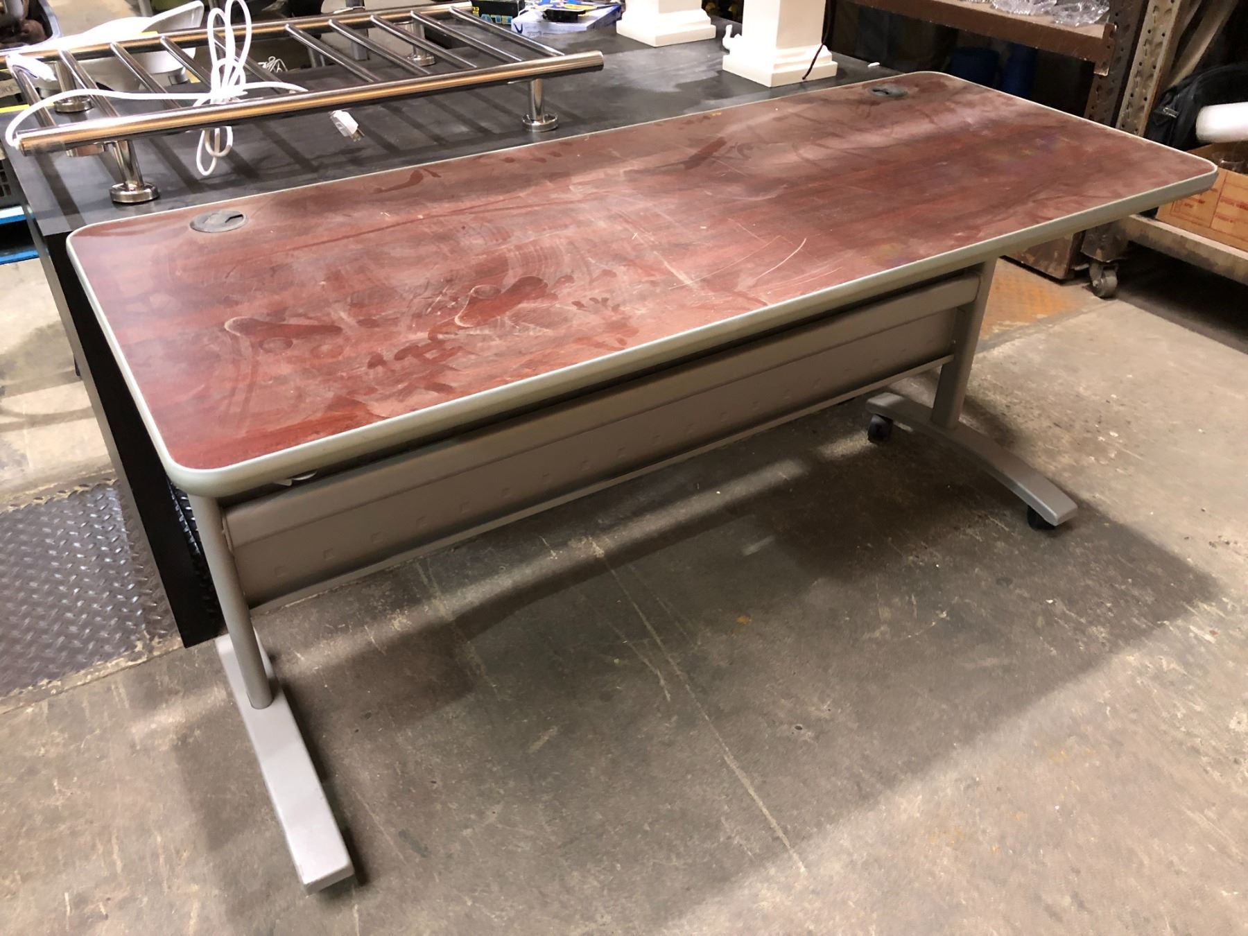 Burgundy & Grey rolling desk/ workstation