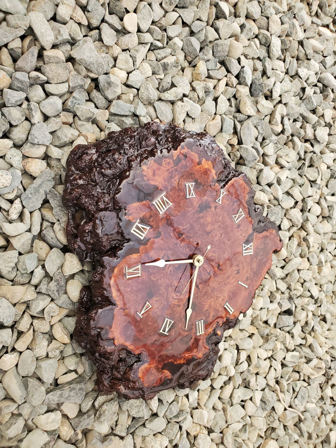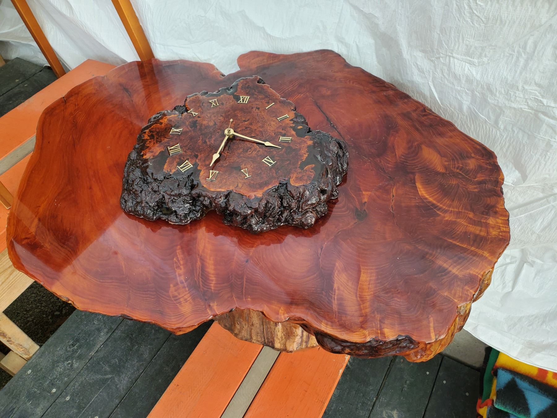 Burl Table & Burl Clock Most Items have not been tested - 17% Buyer Fee. Payment Processed through Live Auction World ( Visa or Master Card ) pick up Saturday, or Tuesday