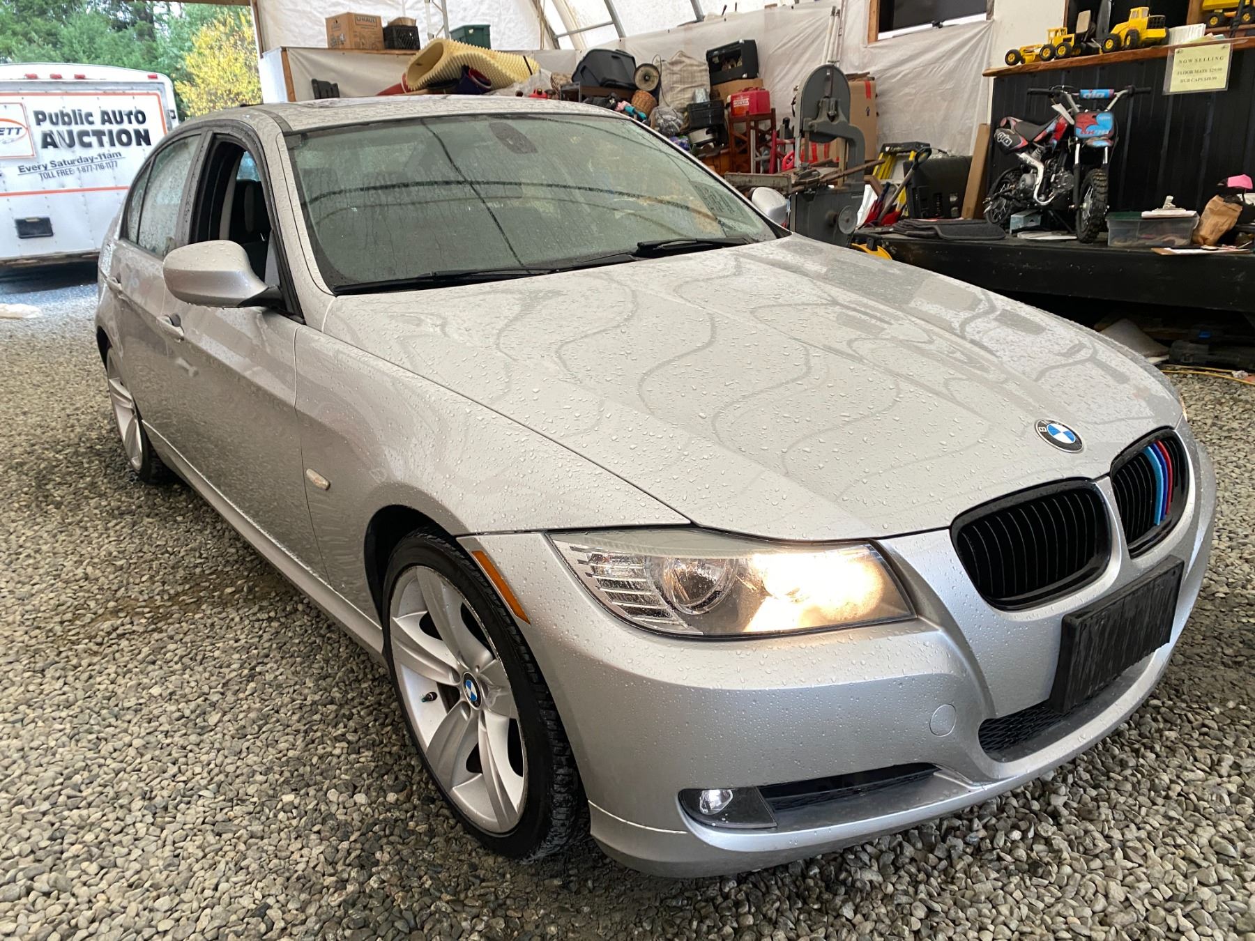 2010 BMW 323I, SILVER, 177755 KMS, 3.0L, 6 CYLINDER, GASOLINE, AUTOMATIC WITH TIPTRONIC, TRANSMISSION, REAR WHEEL DRIVE, 4 PASSENGER. AIR CONDITIONING, POWER WINDOWS, POWER LOCKS, KEY-LESS ENTRY, TILT STEERING, CRUISE CONTROL, ALLOY WHEELS, ANTI THEFT, DUAL AIR BAGS, POWER SUNROOF, CD PLAYER, BLUETOOTH, LEATHER SEATS, POWER SEATS, HEATED SEATS, MEMORY SEATS, TRACTION CONTROL, DUAL ZONE CLIMATE, STEERING WHEEL CONTROLS, FOG LIGHTS, POWER MIRRORS, PUSH-BUTTON START. DECLARATIONS: NOT MECHANICALLY INSPECTED, NOT SUITABLE FOR TRANSPORTATION. MUST TOW.3 ACCIDENTS 0 GLASS CLAIM, TOTALING $3324. SERVICE HISTORY SHOWS8 RECORDS.