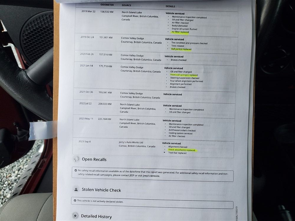 Automatic transmission and 3.8 Litre Engine, 6 Cylinder, Four Wheel Drive, 236373 KMRed, 5 PassengerNo Declarations - No Accidents over $2000, BC Registered No Reported Accidents,Power Steering, Power Brakes, Intermittent Wipers, Dual Air Bag, AM/FM Stereo , Rear Defroster, Bucket Seats, Anti Lock Brakes, Front Disc Brakes-Air Conditioning, Power Windows, Power Locks, Keyless Entry, Tilt Steering, Cruise Control, Alloy Wheels, Anti Theft, CD Player, Information Center, Traction Control, Fog Lights, Running Boards Auction Notes : Trail Rated 4x4, Removeable Hard Top, Brakes F-60% R-90%