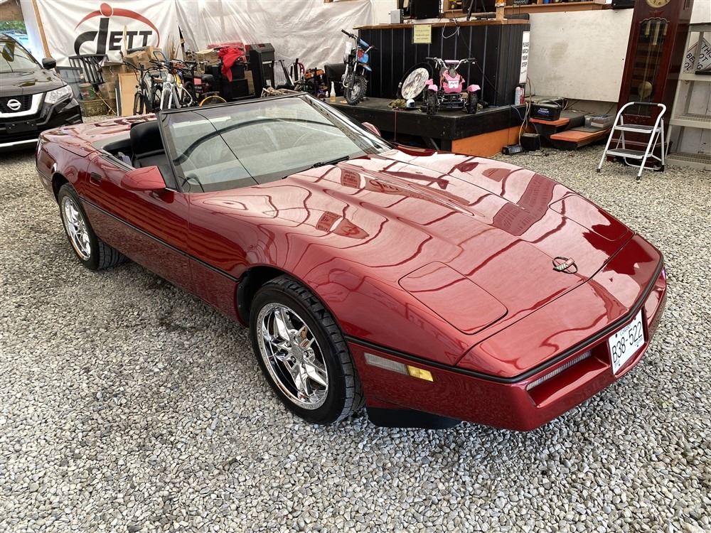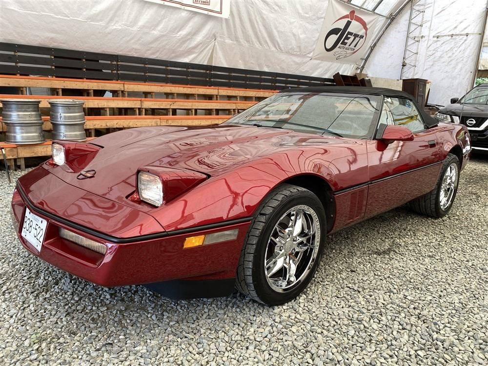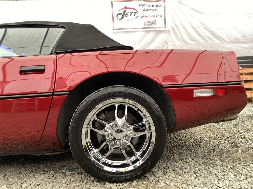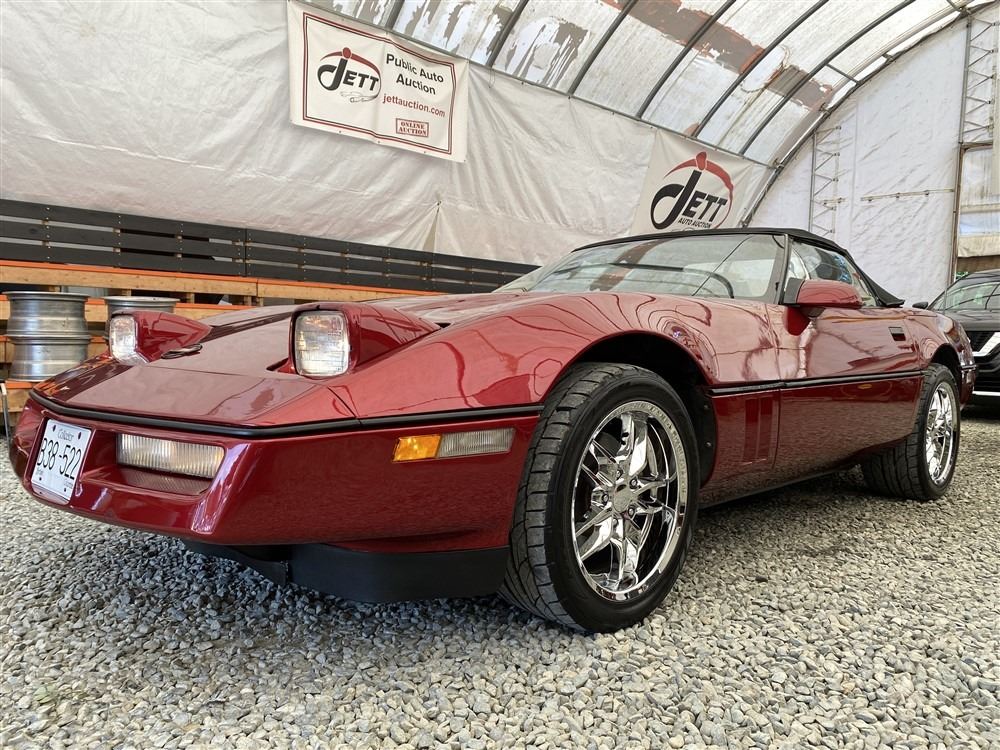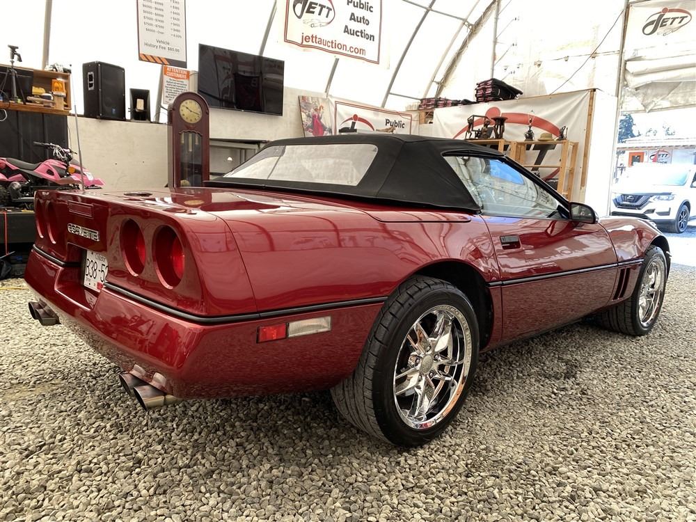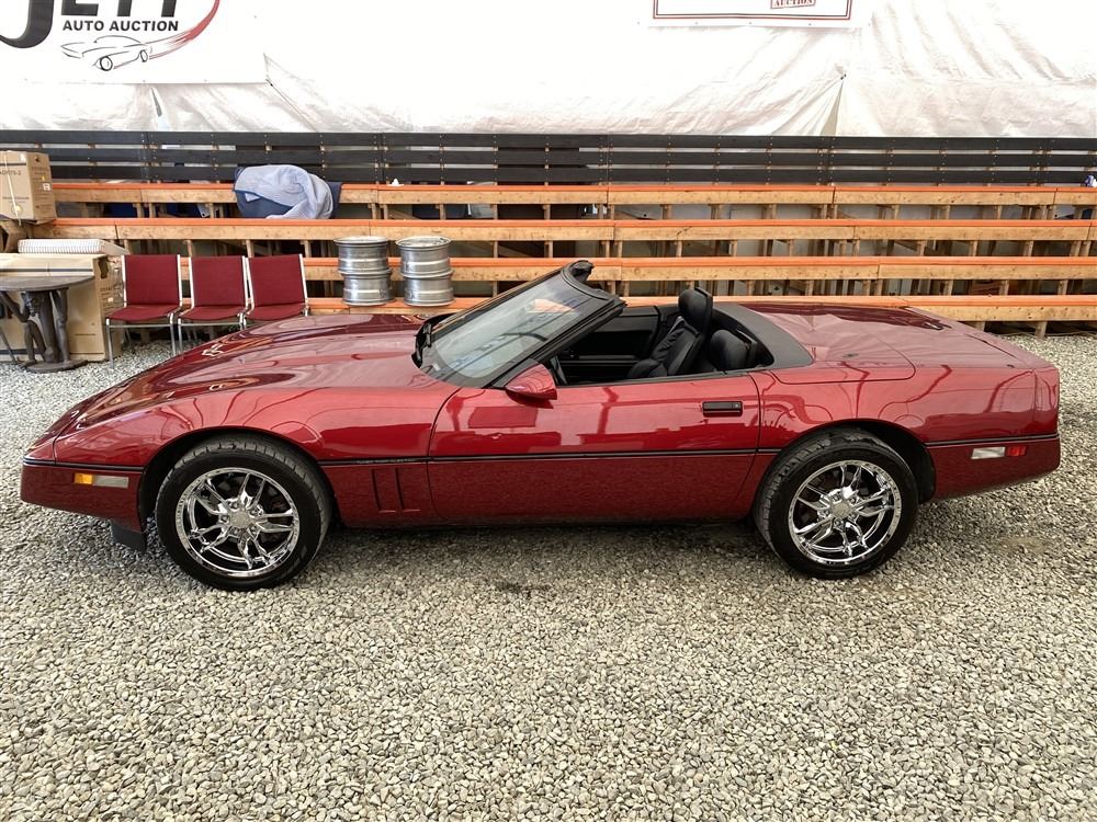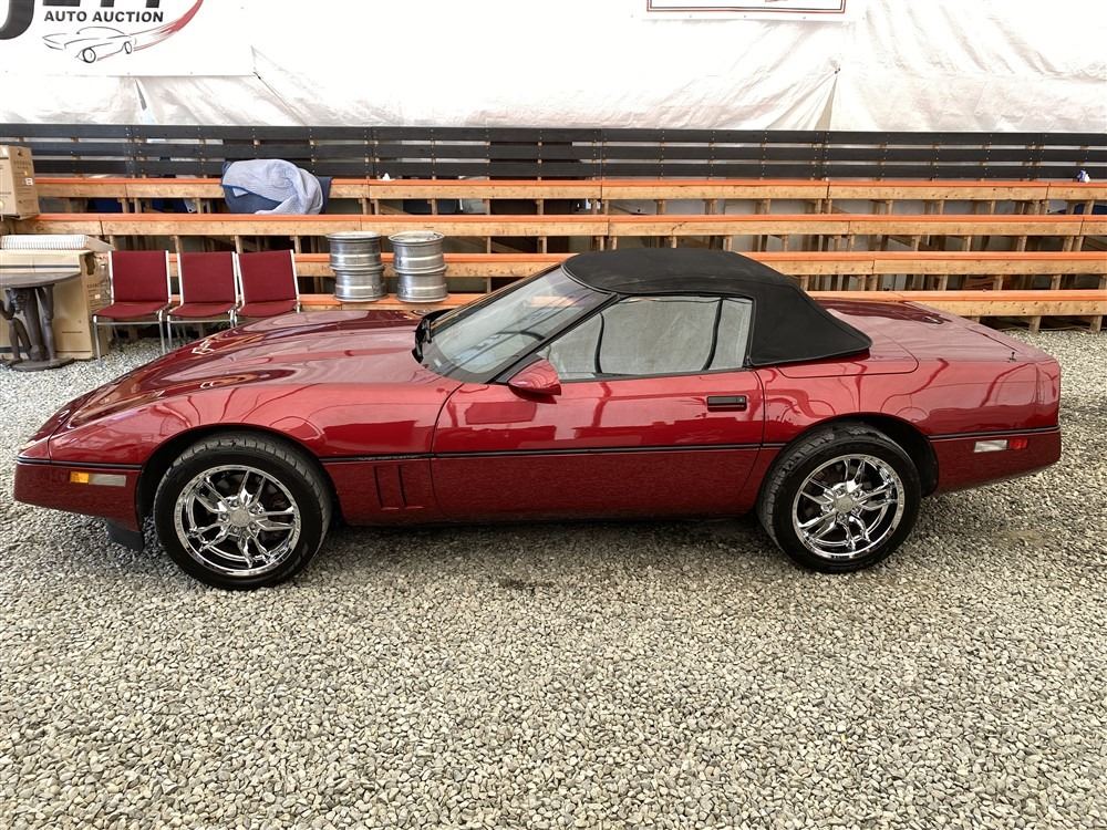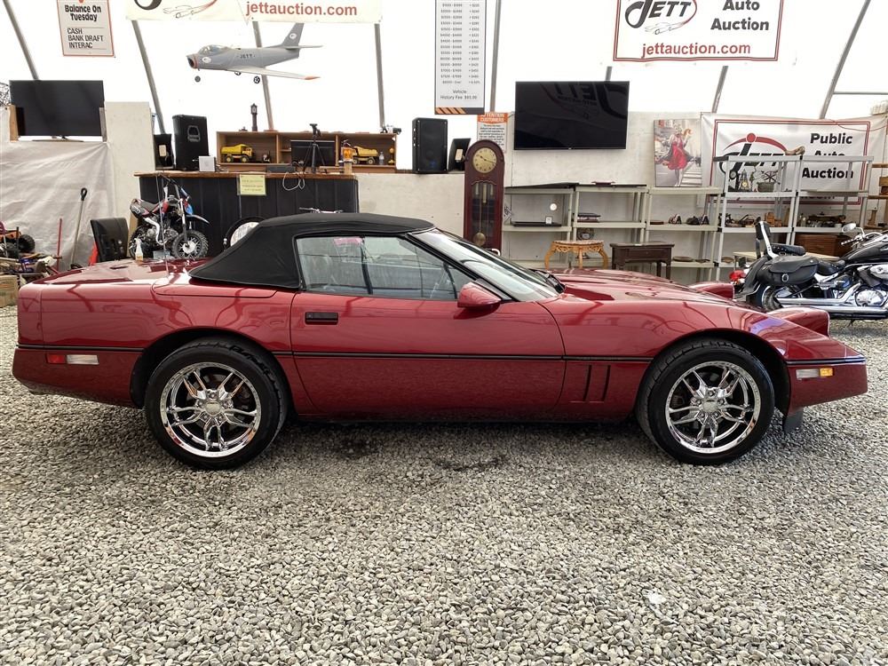 1989 CHEVROLET CORVETTE CONVERTIBLE, RED, 165,536 KMS, 5.7L, 8 CYLINDER, GASOLINE, AUTOMATIC, TRANSMISSION, REAR WHEEL DRIVE, 2 PASSENGER. AIR CONDITIONING, POWER WINDOWS, POWER LOCKS, TILT STEERING, CRUISE CONTROL, ALLOY WHEELS, CD PLAYER, AFTERMARKET STEREO, LEATHER SEATS, POWER SEATS, HEATED MIRRORS, INFOTAINMENT CENTER, FOG LIGHTS, SPARE KEY, POWER MIRRORS, . DECLARATIONS: 6 ACCIDENTS 1 GLASS CLAIM, TOTALING $7372. SERVICE HISTORY SHOWS5 RECORDS.