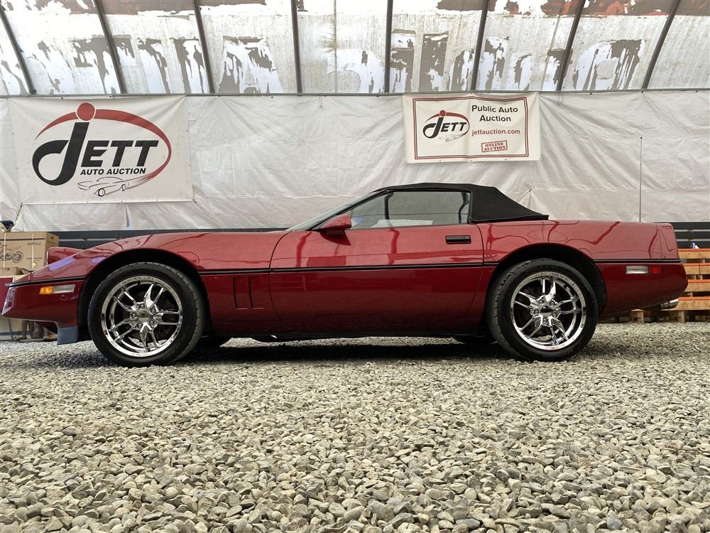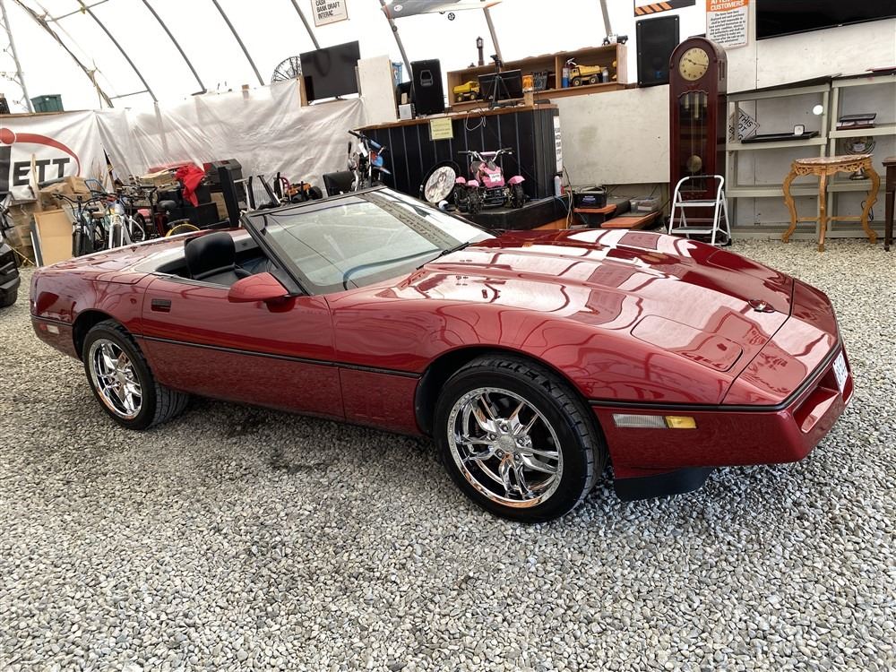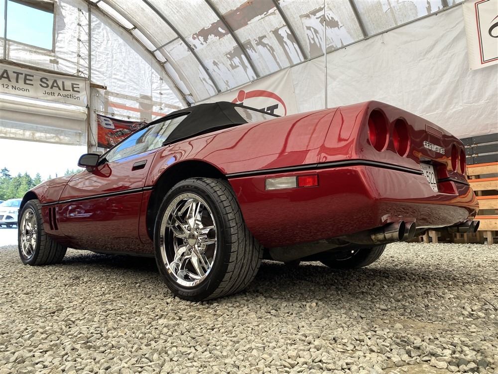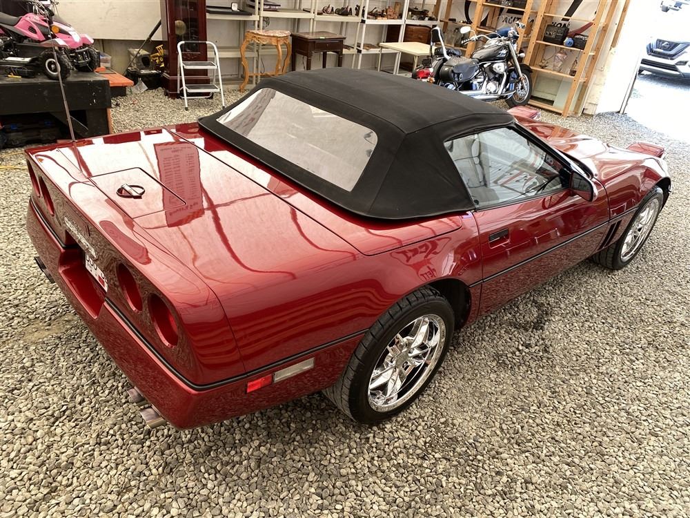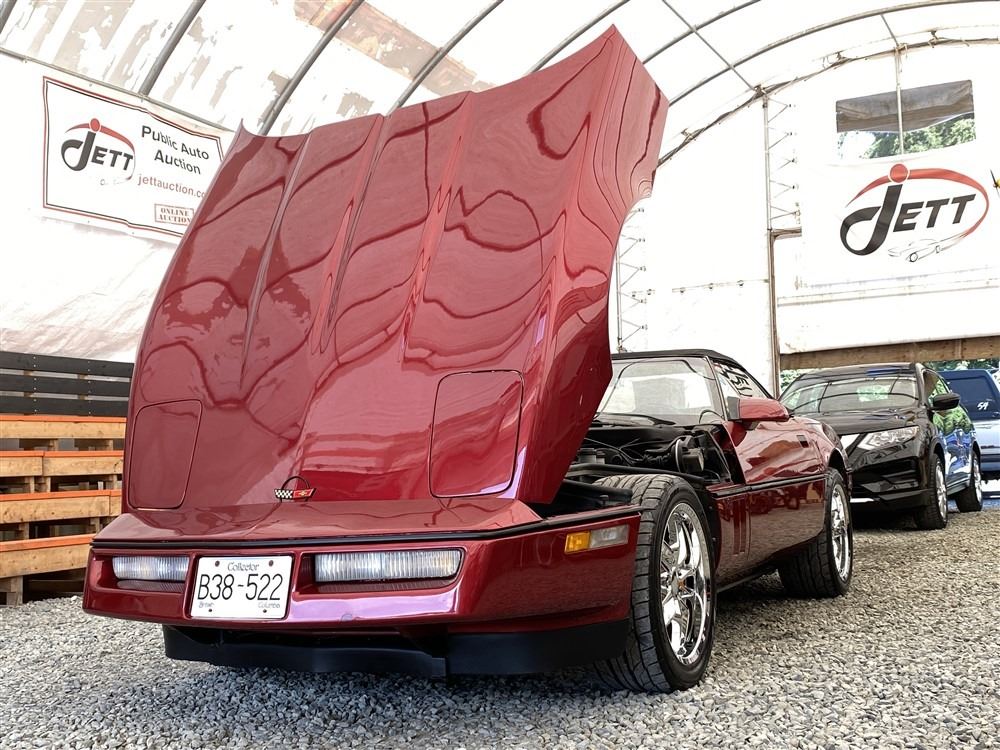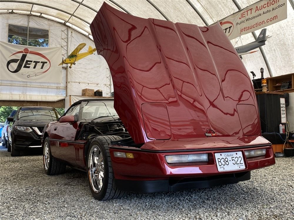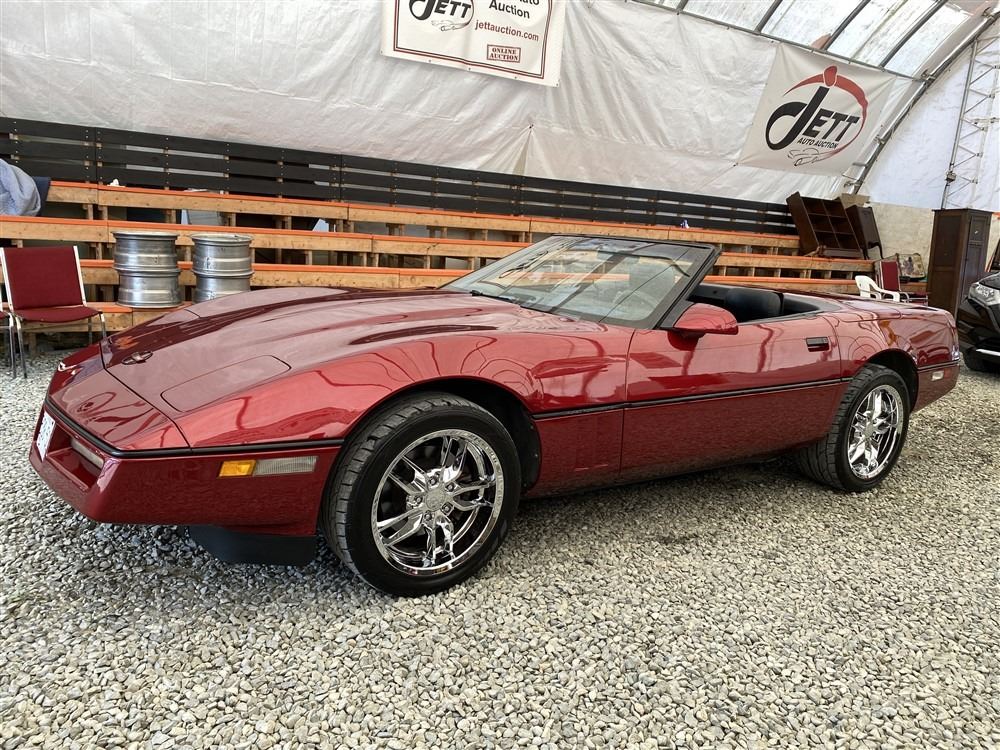 1989 CHEVROLET CORVETTE CONVERTIBLE, RED, 165,536 KMS, 5.7L, 8 CYLINDER, GASOLINE, AUTOMATIC, TRANSMISSION, REAR WHEEL DRIVE, 2 PASSENGER. AIR CONDITIONING, POWER WINDOWS, POWER LOCKS, TILT STEERING, CRUISE CONTROL, ALLOY WHEELS, CD PLAYER, AFTERMARKET STEREO, LEATHER SEATS, POWER SEATS, HEATED MIRRORS, INFOTAINMENT CENTER, FOG LIGHTS, SPARE KEY, POWER MIRRORS, . DECLARATIONS: 6 ACCIDENTS 1 GLASS CLAIM, TOTALING $7372. SERVICE HISTORY SHOWS5 RECORDS.