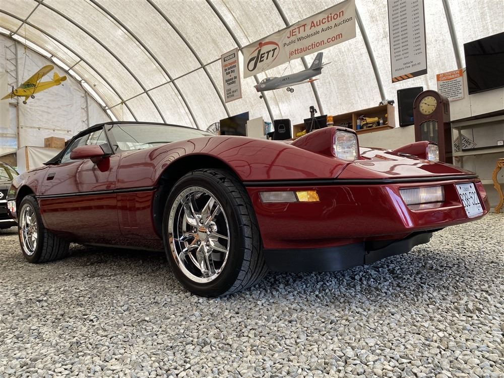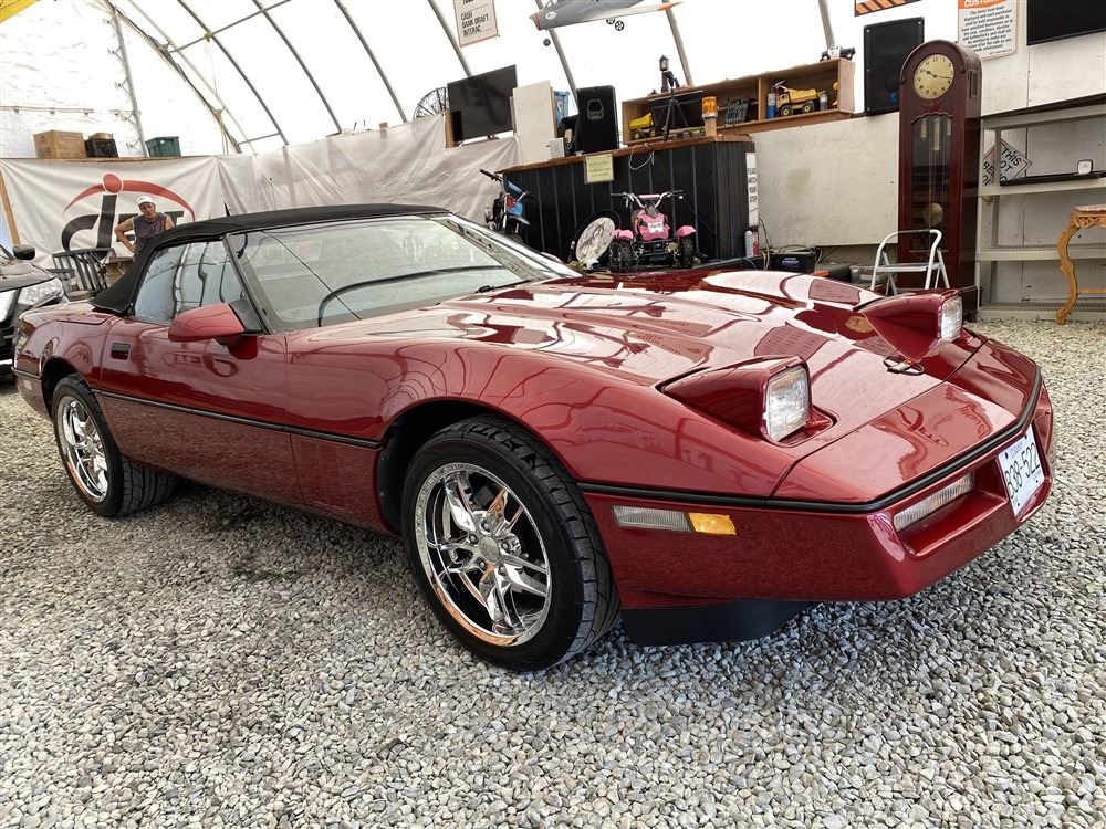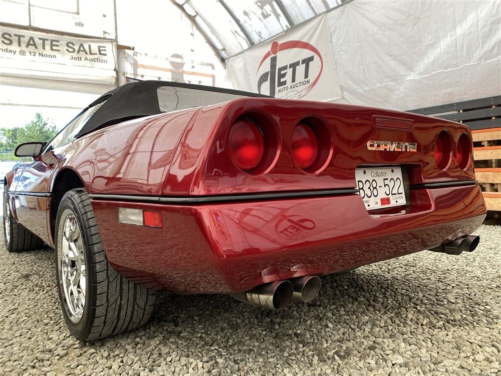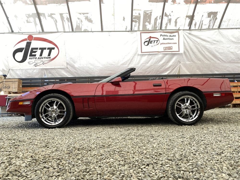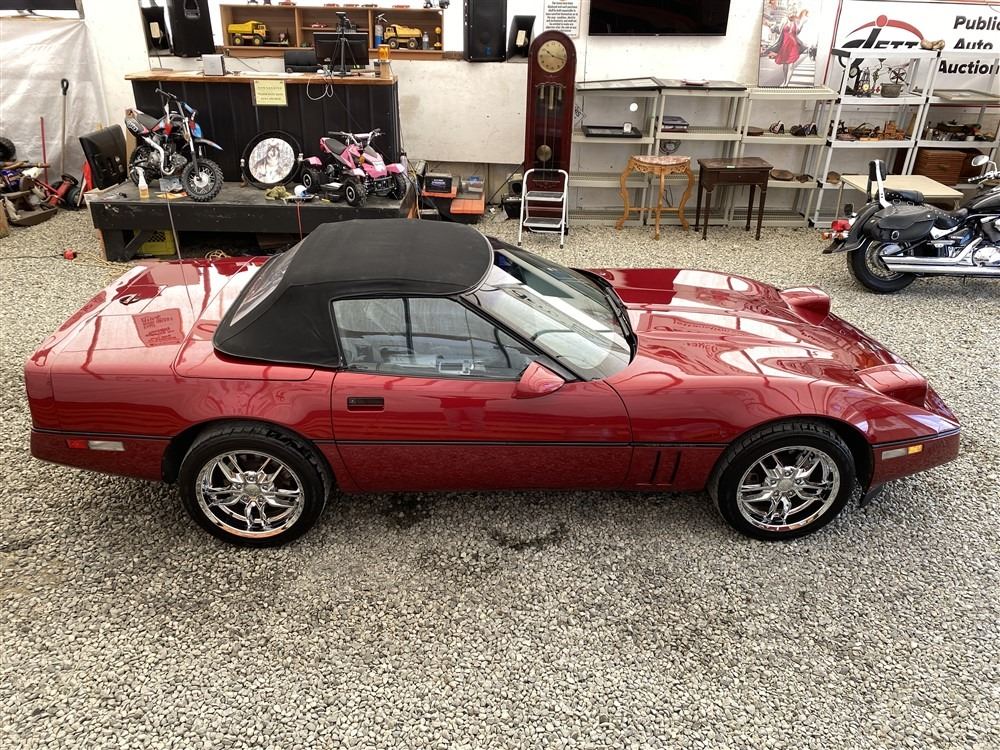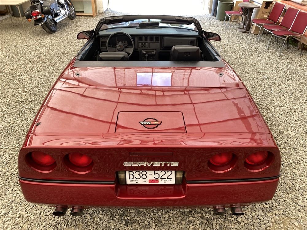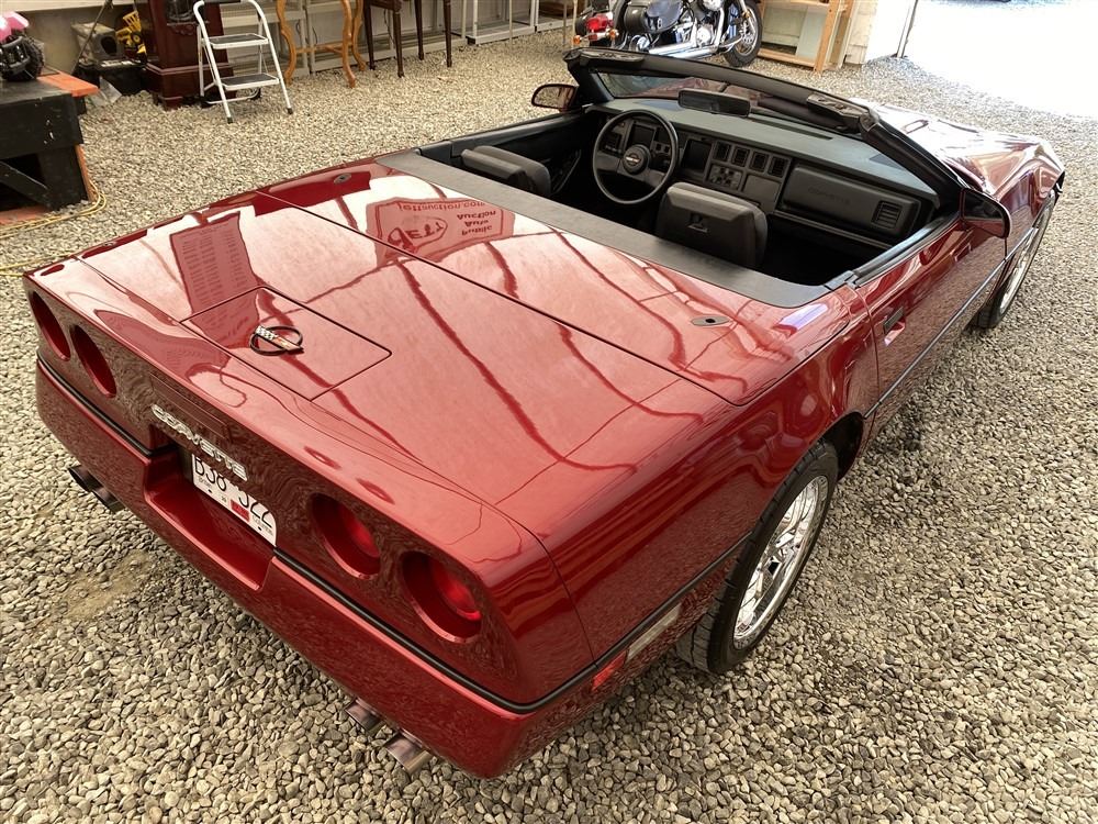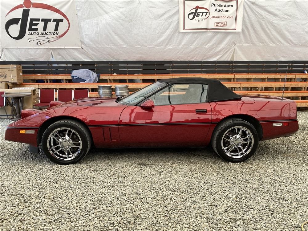 1989 CHEVROLET CORVETTE CONVERTIBLE, RED, 165,536 KMS, 5.7L, 8 CYLINDER, GASOLINE, AUTOMATIC, TRANSMISSION, REAR WHEEL DRIVE, 2 PASSENGER. AIR CONDITIONING, POWER WINDOWS, POWER LOCKS, TILT STEERING, CRUISE CONTROL, ALLOY WHEELS, CD PLAYER, AFTERMARKET STEREO, LEATHER SEATS, POWER SEATS, HEATED MIRRORS, INFOTAINMENT CENTER, FOG LIGHTS, SPARE KEY, POWER MIRRORS, . DECLARATIONS: 6 ACCIDENTS 1 GLASS CLAIM, TOTALING $7372. SERVICE HISTORY SHOWS5 RECORDS.