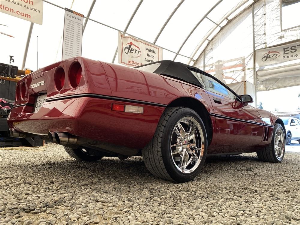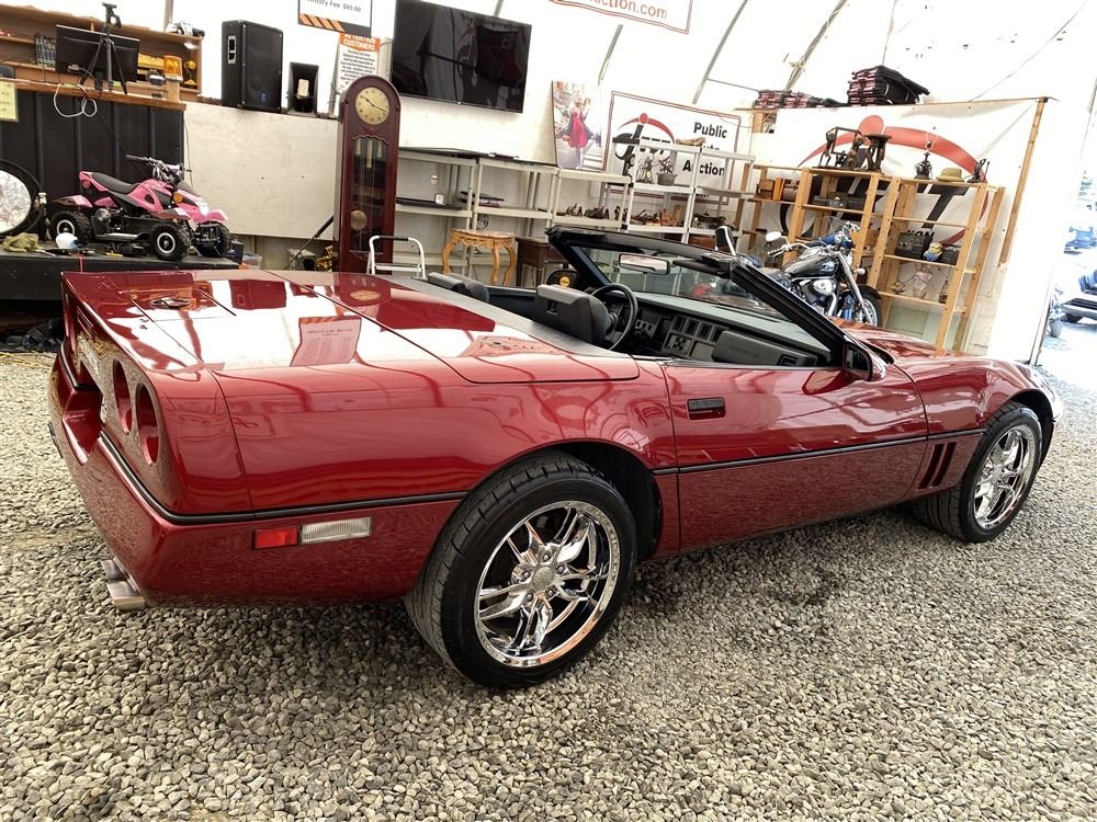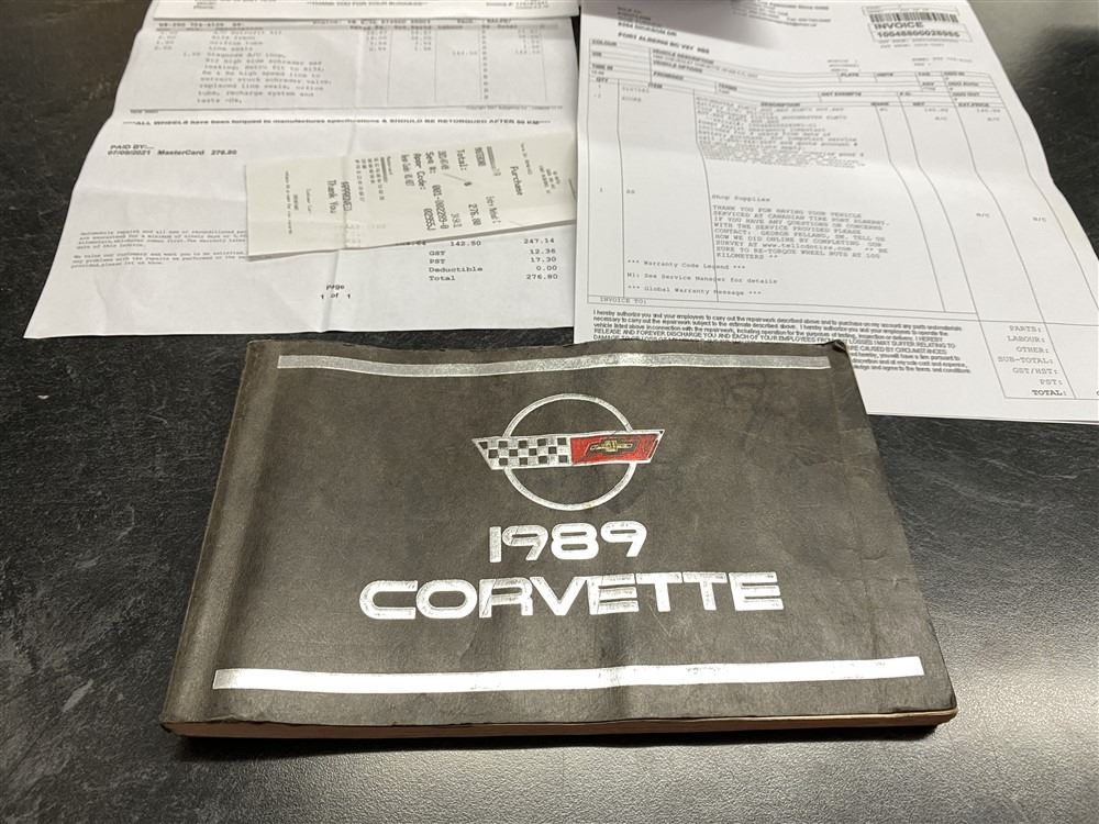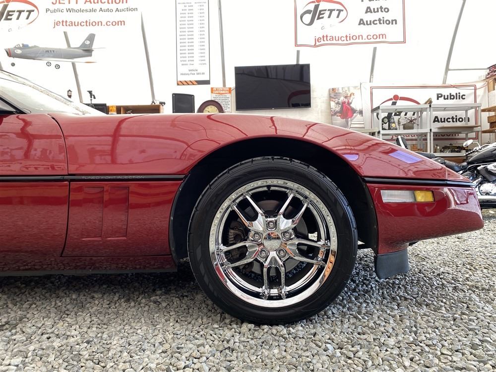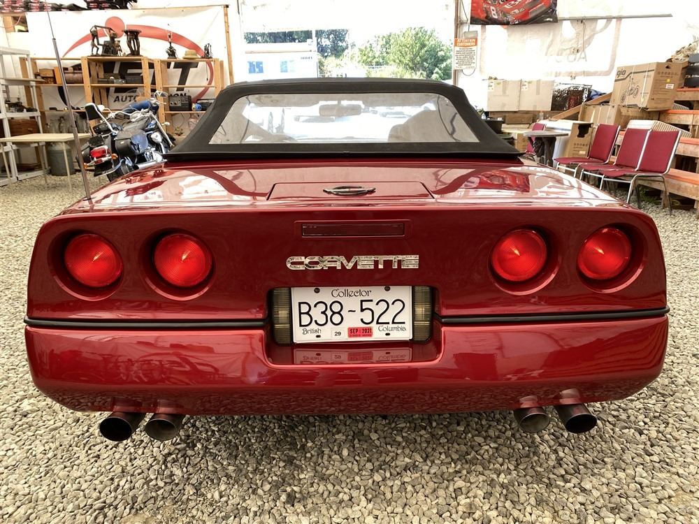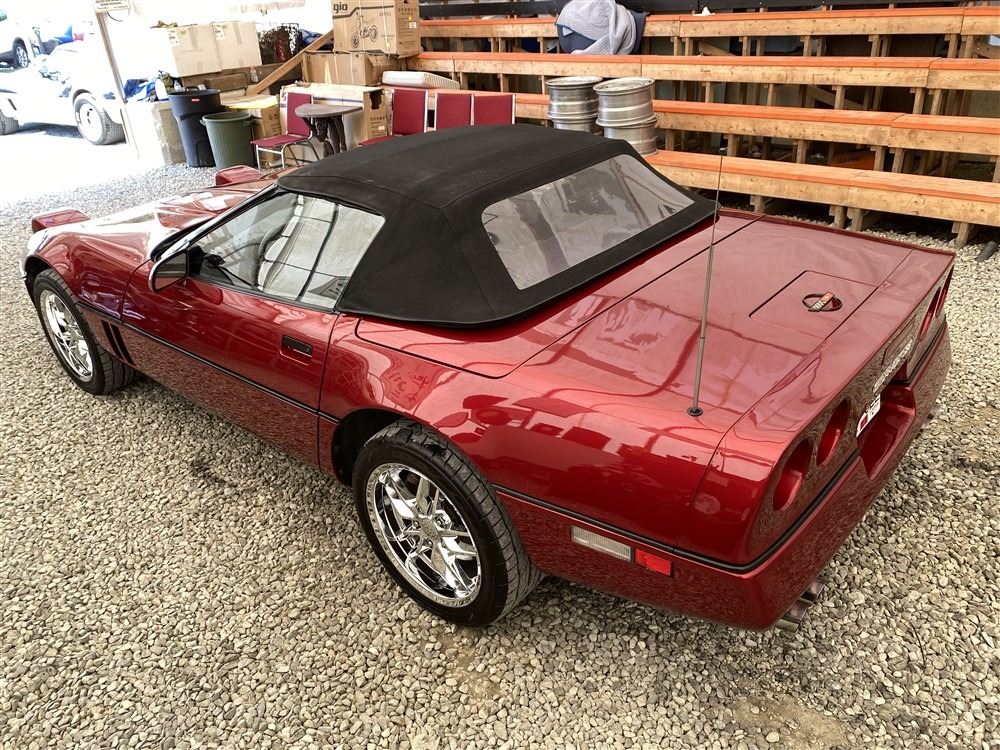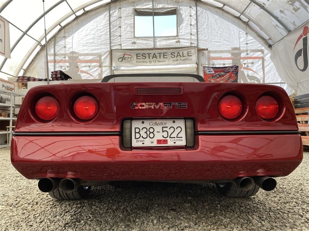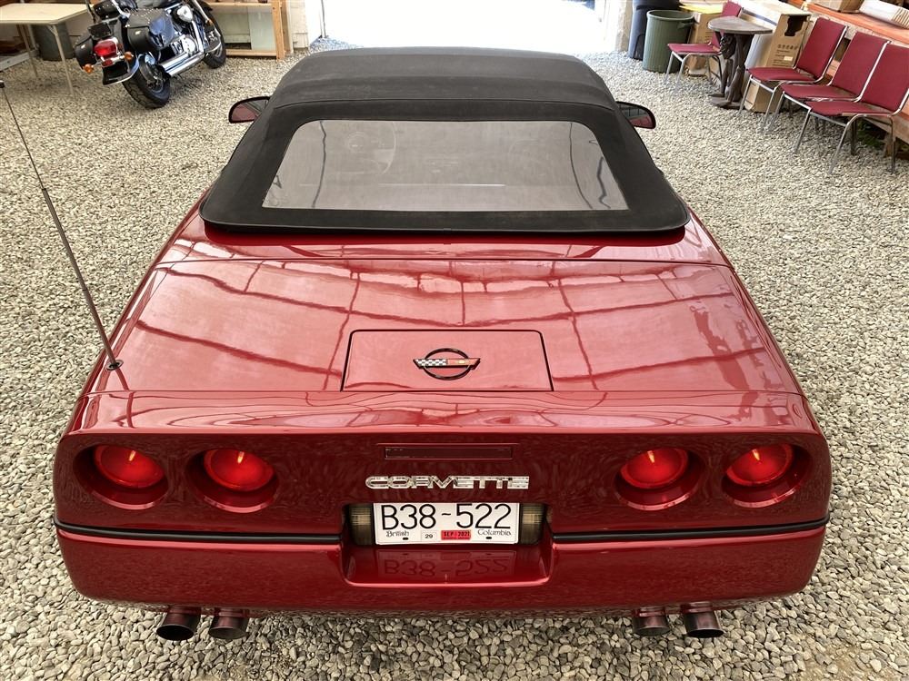 1989 CHEVROLET CORVETTE CONVERTIBLE, RED, 165,536 KMS, 5.7L, 8 CYLINDER, GASOLINE, AUTOMATIC, TRANSMISSION, REAR WHEEL DRIVE, 2 PASSENGER. AIR CONDITIONING, POWER WINDOWS, POWER LOCKS, TILT STEERING, CRUISE CONTROL, ALLOY WHEELS, CD PLAYER, AFTERMARKET STEREO, LEATHER SEATS, POWER SEATS, HEATED MIRRORS, INFOTAINMENT CENTER, FOG LIGHTS, SPARE KEY, POWER MIRRORS, . DECLARATIONS: 6 ACCIDENTS 1 GLASS CLAIM, TOTALING $7372. SERVICE HISTORY SHOWS5 RECORDS.