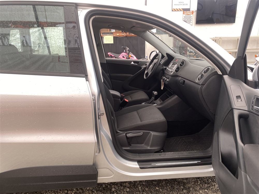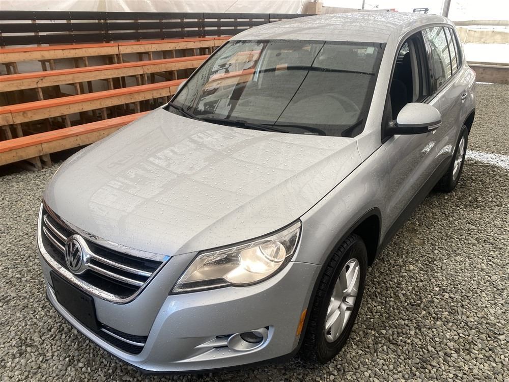 2010 VOLKSWAGEN TIGUAN, SILVER, 141344 KMS, 2.0L, 4 CYLINDER, GASOLINE, AUTOMATIC WITH TIPTRONIC, TRANSMISSION, FOUR WHEEL DRIVE, 5 PASSENGER. AIR CONDITIONING, POWER WINDOWS, POWER LOCKS, KEY-LESS ENTRY, TILT STEERING, CRUISE CONTROL, ALLOY WHEELS, ANTI THEFT, DUAL AIR BAGS, CD PLAYER, HEATED SEATS, HEATED MIRRORS, FOG LIGHTS, POWER MIRRORS, NO REPORTED ACCIDENTS., ELECTRONIC STABILITY CONTROL (ESC). DECLARATIONS: EX-OOP MANITOBA, NO DECLARATIONS 0 ACCIDENTS 0 GLASS CLAIM, TOTALING $0. GOOD SERVICE HISTORY, CARFAX SHOWING 16 RECORDS.