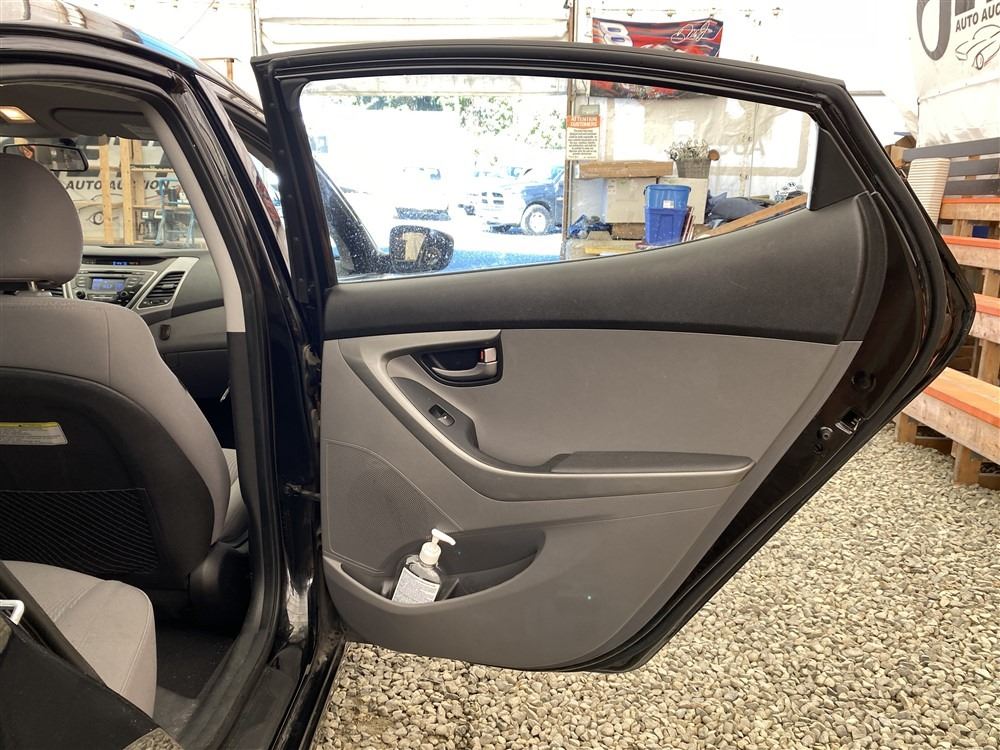 2014 HYUNDAI ELANTRA SE, BLACK, 122872 KMS, L, 4 CYLINDER, GASOLINE, AUTOMATIC WITH TIPTRONIC, TRANSMISSION, FRONT WHEEL DRIVE, 5 PASSENGER. AIR CONDITIONING, POWER WINDOWS, POWER LOCKS, KEY-LESS ENTRY, TILT STEERING, CRUISE CONTROL, ALLOY WHEELS, ANTI THEFT, DUAL AIR BAGS, CD PLAYER, BLUETOOTH, HEATED SEATS, TRACTION CONTROL, STEERING WHEEL CONTROLS, POWER MIRRORS, NO REPORTED ACCIDENTS., SPLIT-FOLDING REAR SEATS. DECLARATIONS: NO DECLARATIONS NOT MECHANICALLY INSPECTED, NOT SUITABLE FOR TRANSPORTATION. MUST TOW.0 ACCIDENTS 0 GLASS CLAIM, TOTALING $0. GOOD SERVICE HISTORY, CARFAX SHOWING 16 RECORDS.