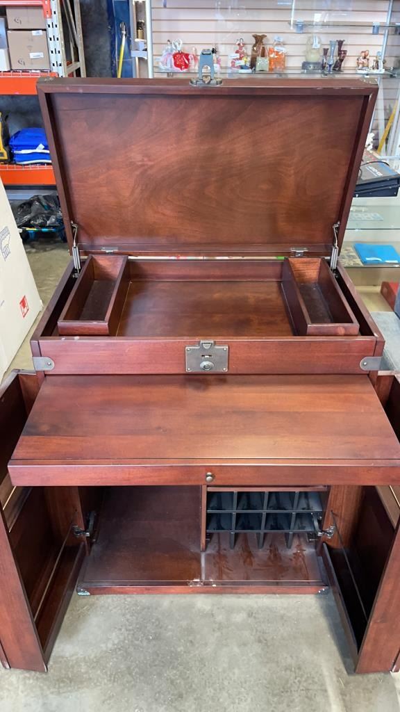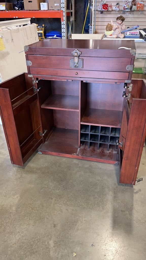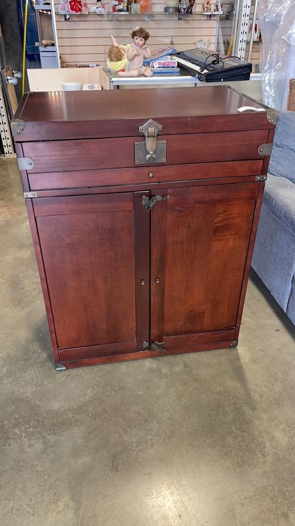 CAMPAIGN BAR WITH ONE DRAWER, 2 DOORS AND STORAGE TOP, GOOD CONDITION