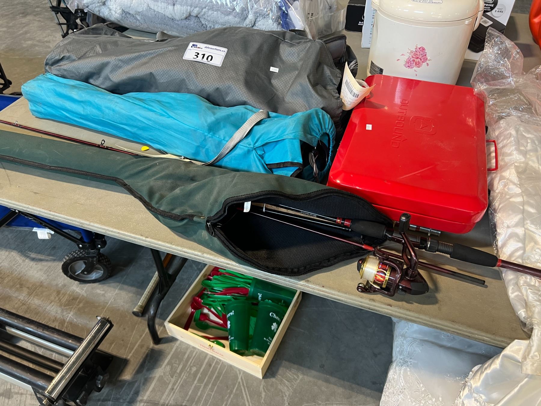 CAMPING SUPPLIES INCLUDING OUTBOUND COOKING STOVE, CAMP CHAIRS AND FISHING POLES
