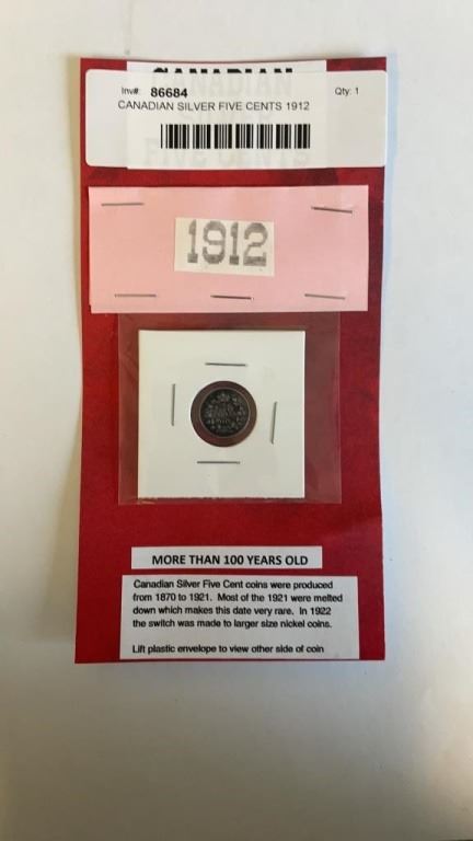 CANADIAN SILVER FIVE CENTS 1912