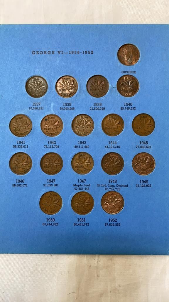 CANADIAN SMALL CENT COLLECTION 1920-1972 - MISSING 6 COINS