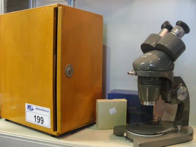 CANLAB MICROSCOPE WITH WOODEN STORAGE BOX AND ACCESSORIES