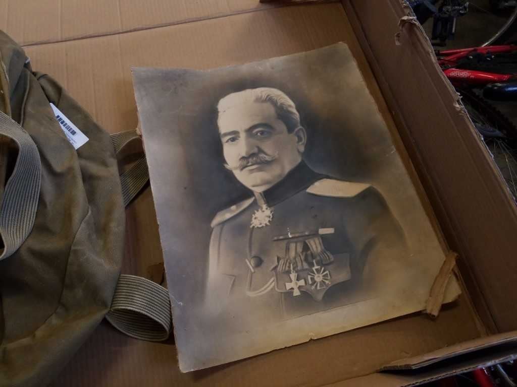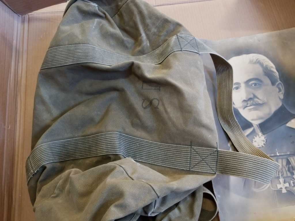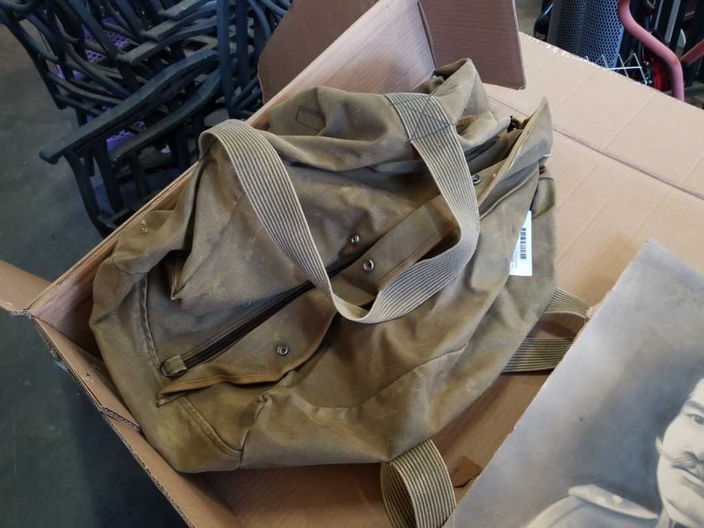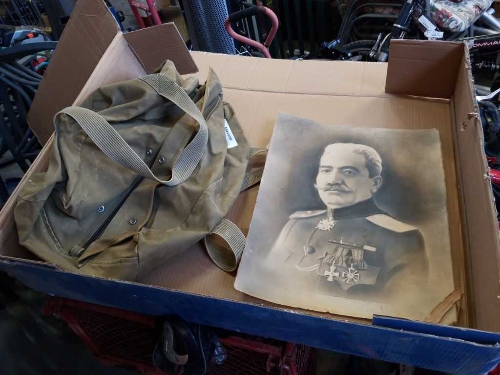 CANVAS DUFFEL BAG AND ANTIQUE MILITARY PORTRAIT