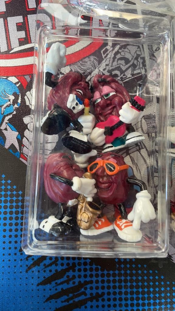 CAPTAIN AMERICA CANVAS WITH PENNZOIL SIGNS, CALIFORNIA RAISONS FIGURES AND TEMPORARY TATTOOS