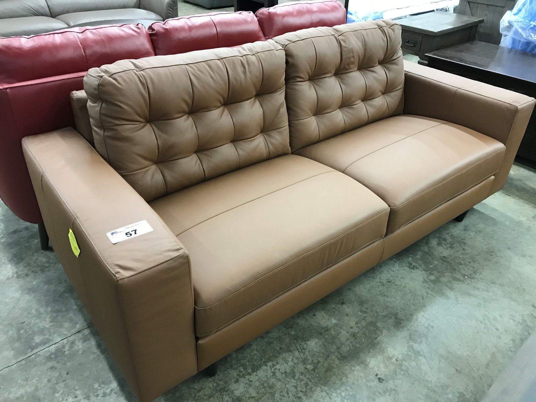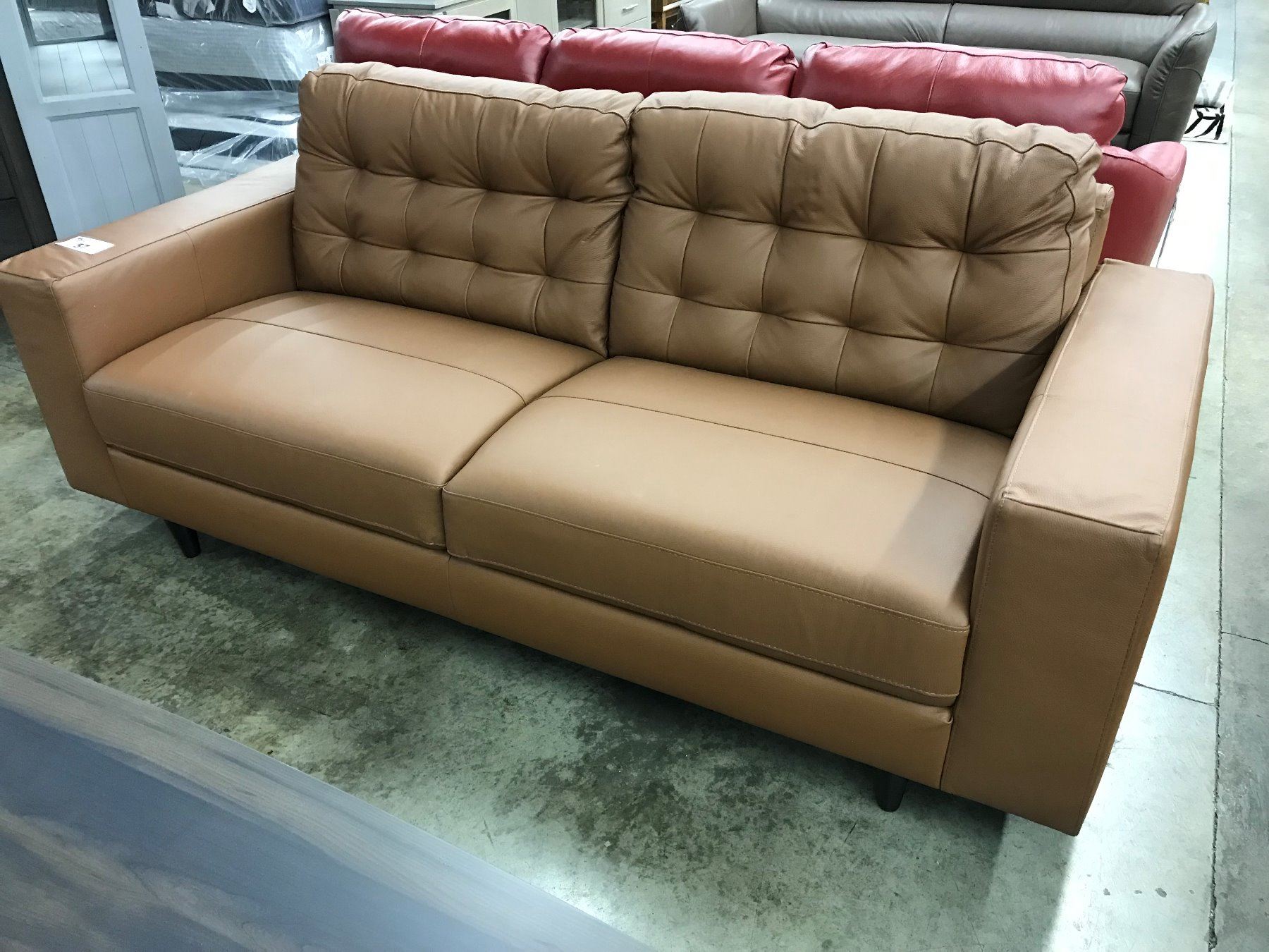 CARAMEL BROWN LEATHER 3 SEAT SOFA