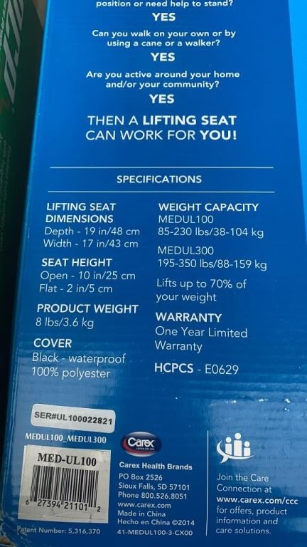 CAREX UPLIFT SEAT ASSIST AND PCE PADDED BATH SAFETY SEAT