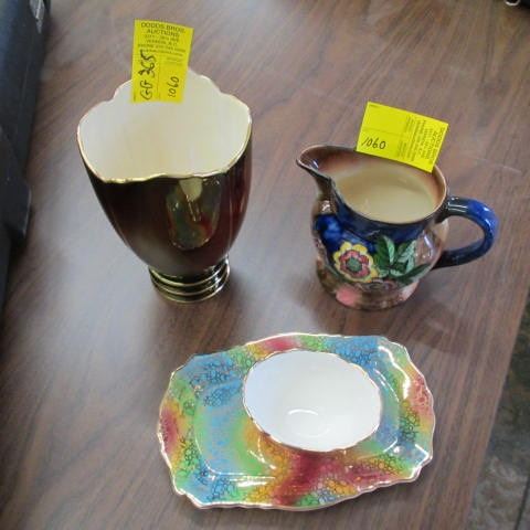 CARLTONWARE VASE, A TUNDSTILL PICTURE & 2 PIECES OF CHINA