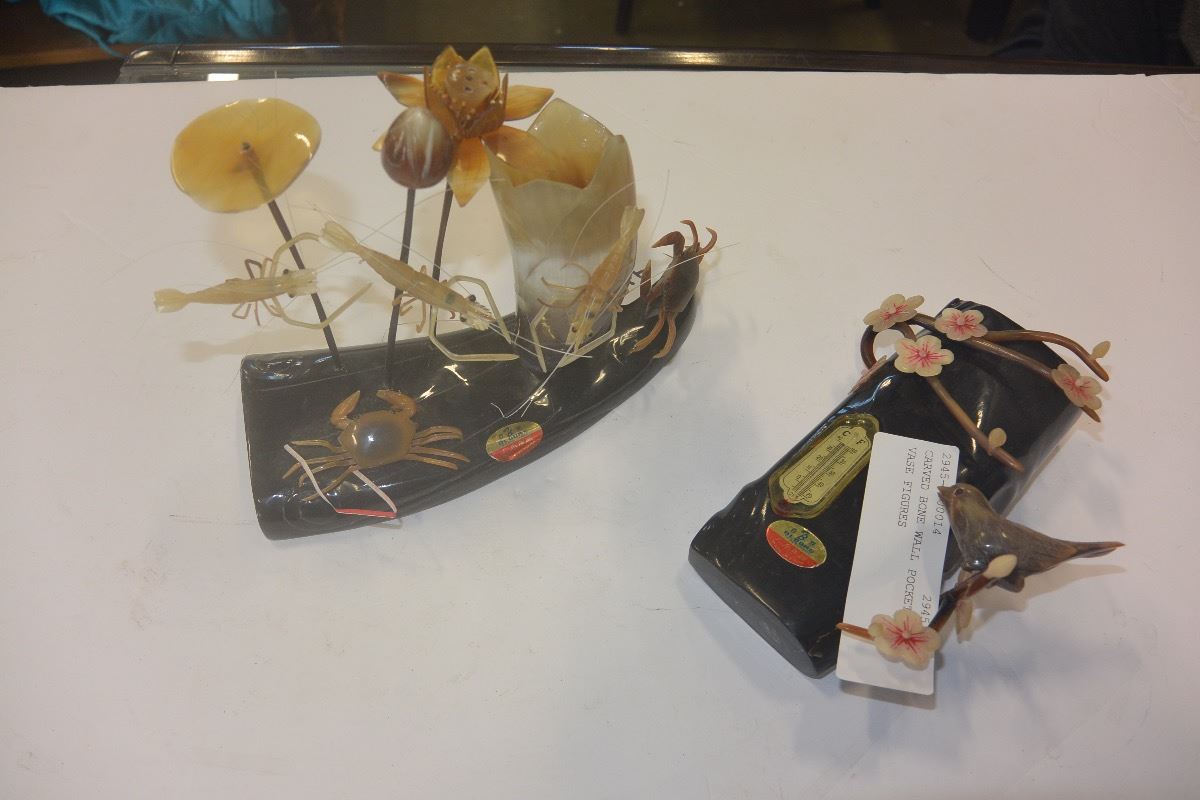 CARVED BONE WALL POCKET AND VASE FIGURES