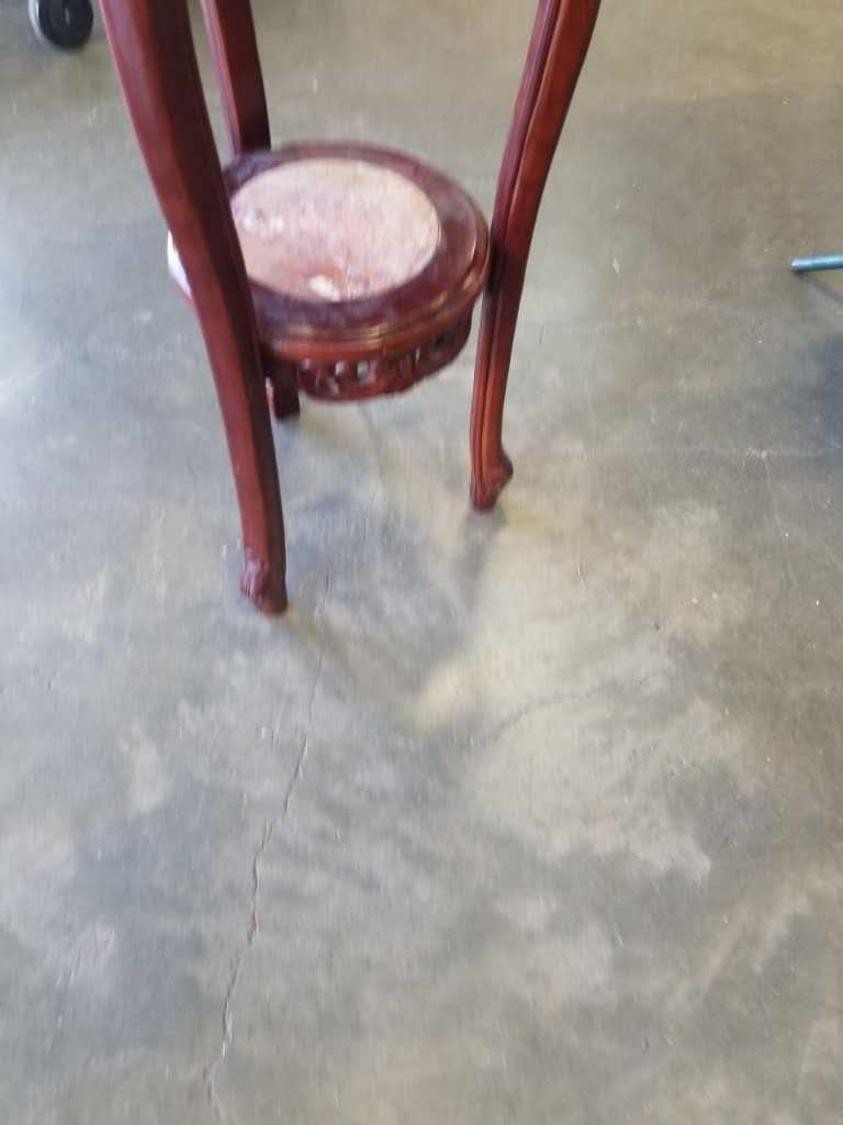 CARVED MAHOGNAY WITH MARBLE INLAY PLANT STAND, GOOD CONDITION, NO CRACKS