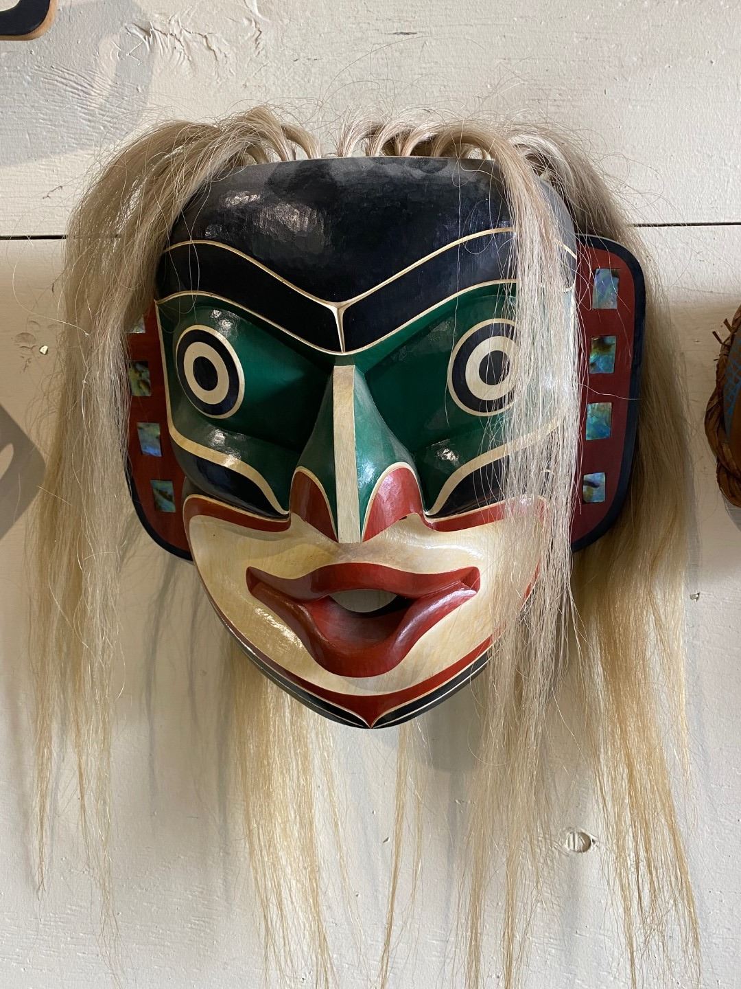 CARVED WEST COAST FIRST NATIONS MASK CARVED BY JAY BRABANT, STUDY OF WILLISE WEED KWNA-QWA APPROX 16"