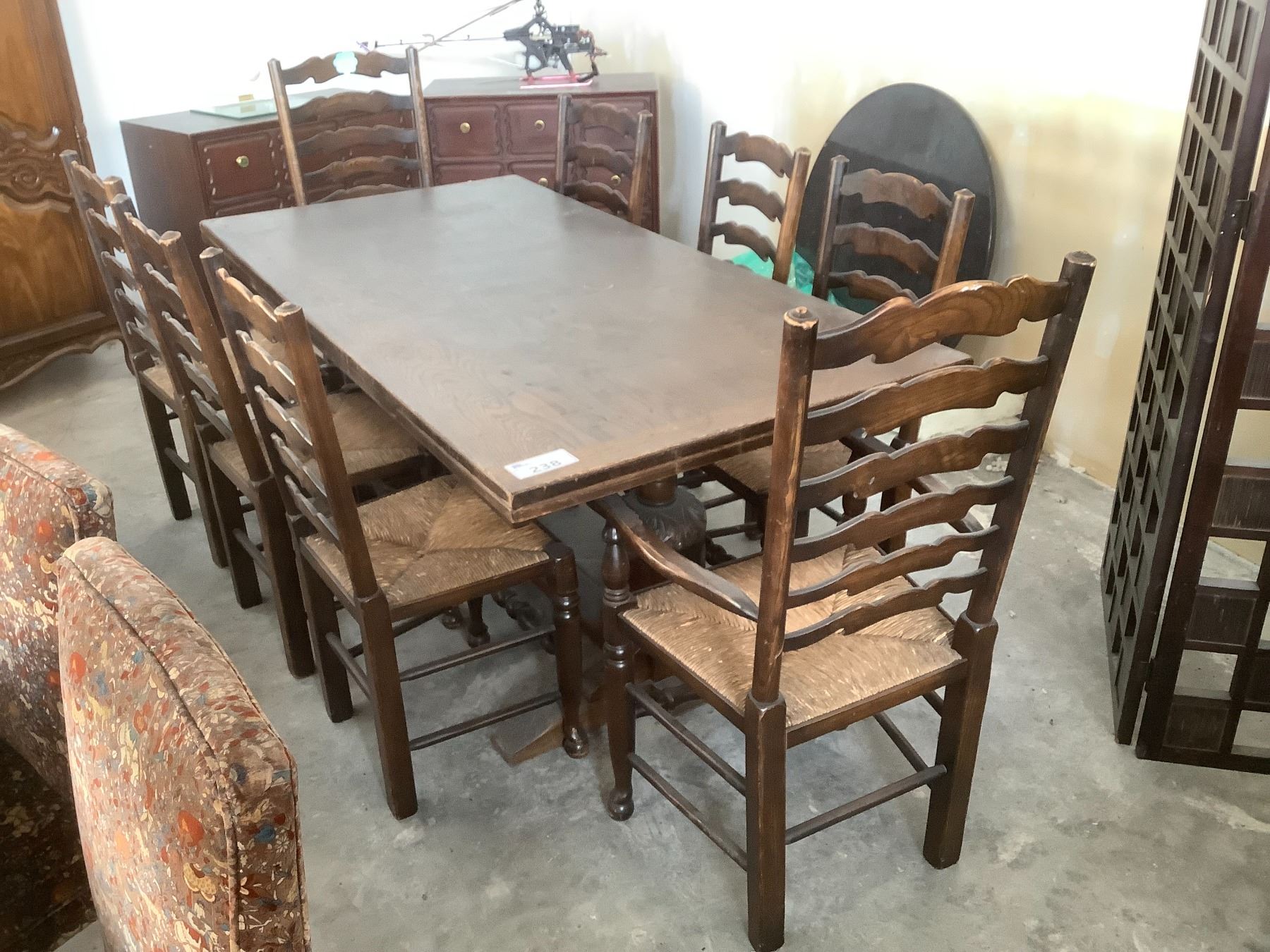 CARVED WOOD DINING SET WITH 6 CHAIRS AND DRAW LEAF TABLE